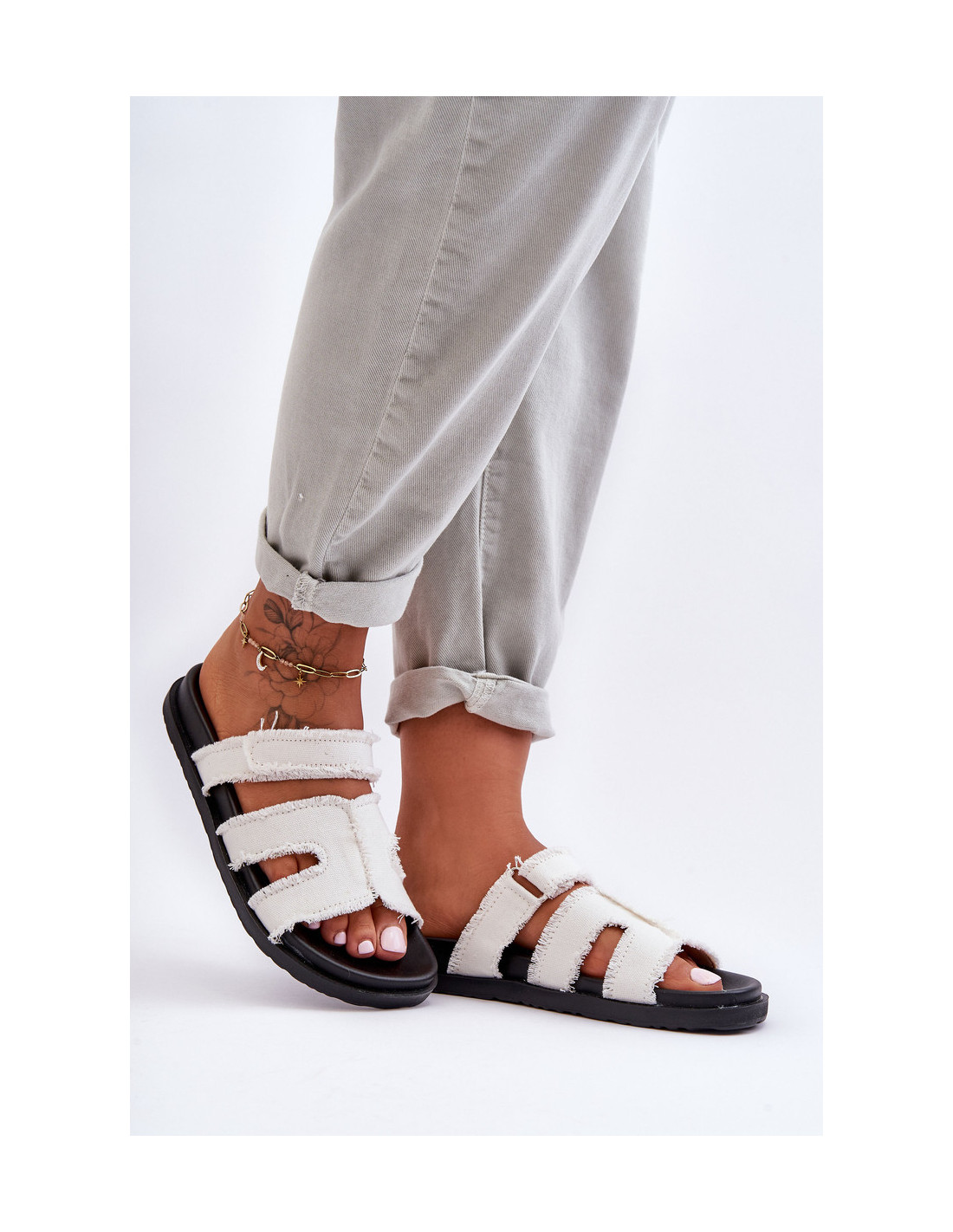 Šios patogios moteriškos šlepetės yra pagamintos iš tekstilės. Batai pastatyti ant plastikinio pado. Šis modelis turi papildomą velcro užsegimą, leidžiantį priderinti avalynę pagal kojos storį. Šis modelis puikiai tiks kasdieniam naudojimui karštomis dienomis! Rinkdamiesi dydį, vadovaukitės dydžių lentele.