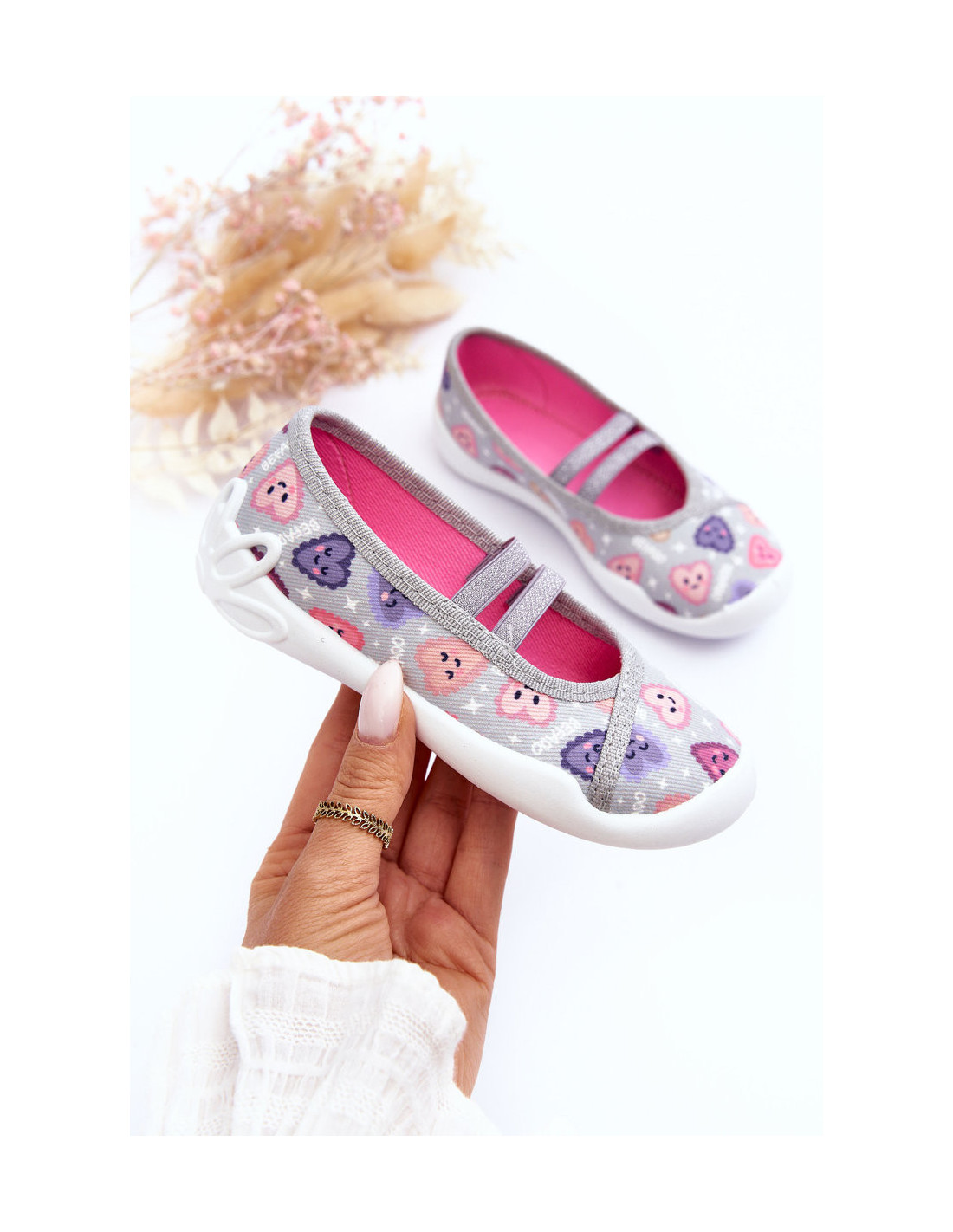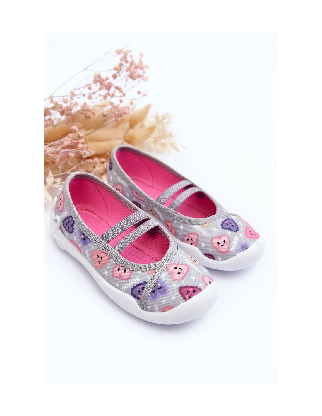 Širdelės šlepetės Befado 116X319 pilkai rožinės spalvos