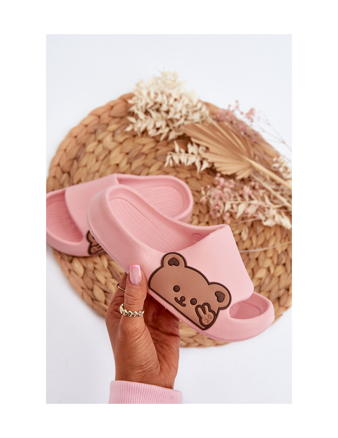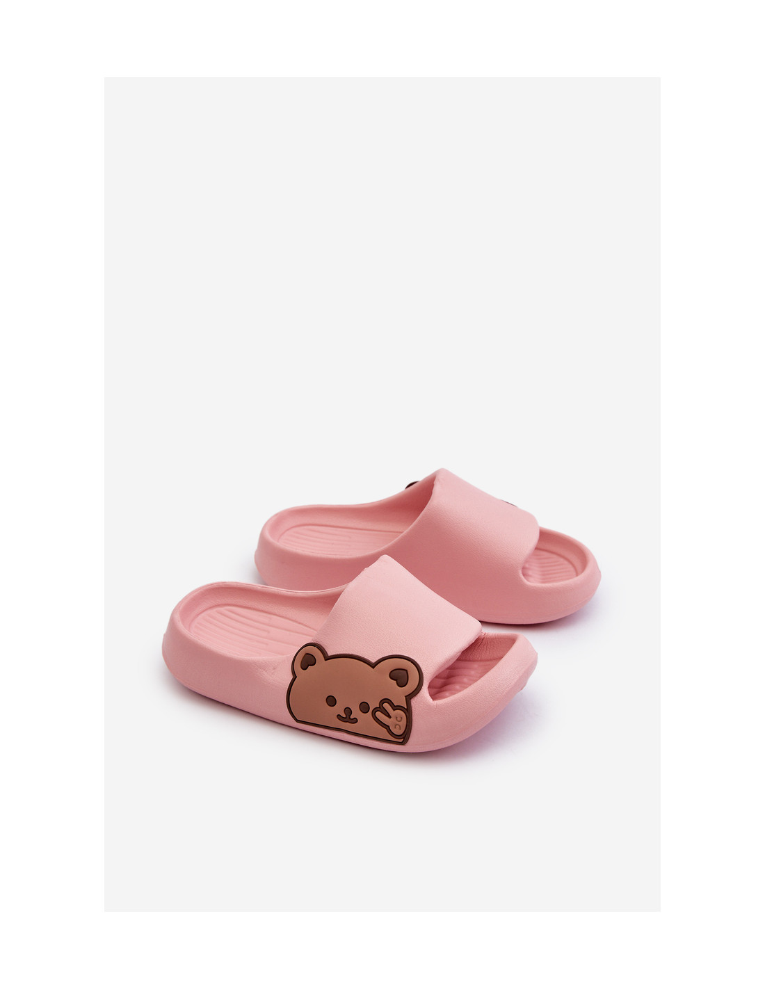 Lengvi putplasčio šlepetės su meškiuku, rožinis reljefas