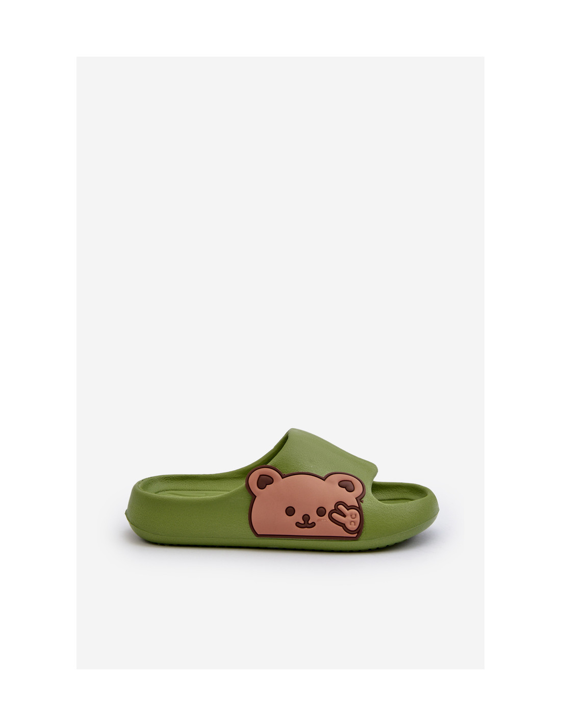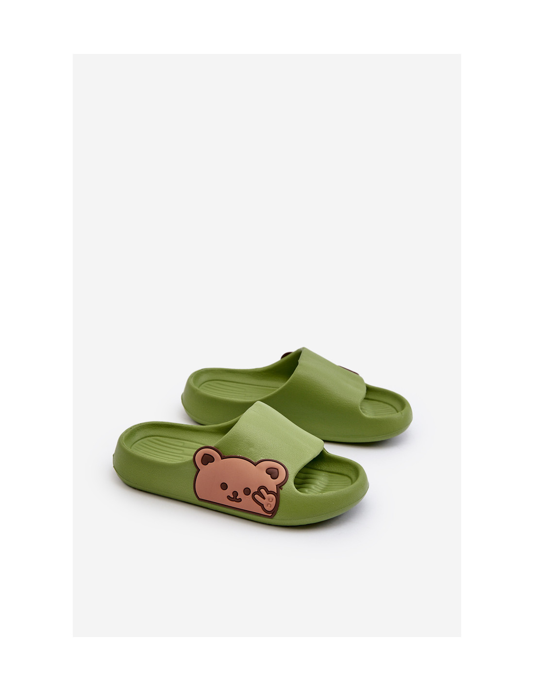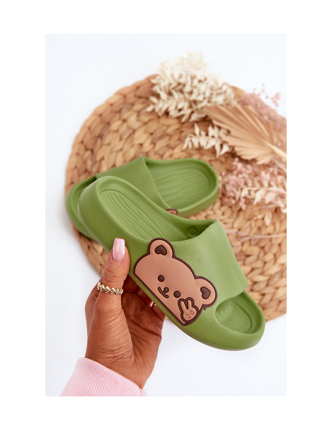 Lengvi putplasčio šlepetės su meškiuku, žalias reljefas