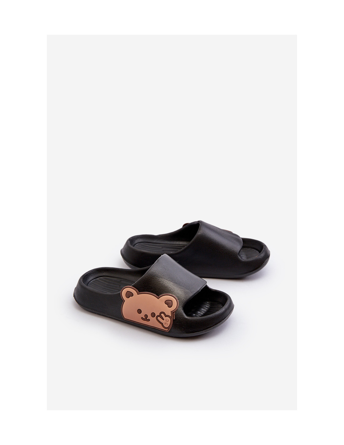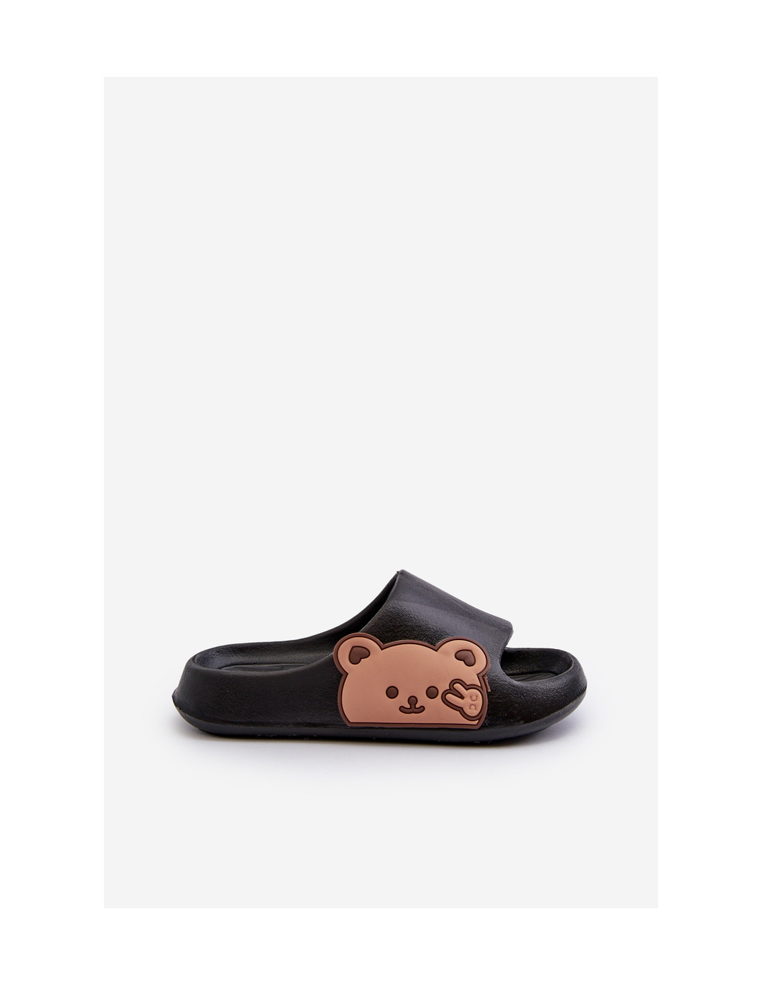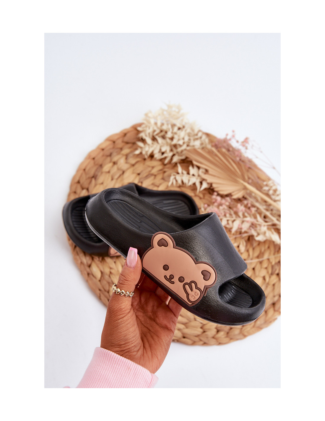 Lengvi putplasčio šlepetės su meškiuku, juodas reljefas