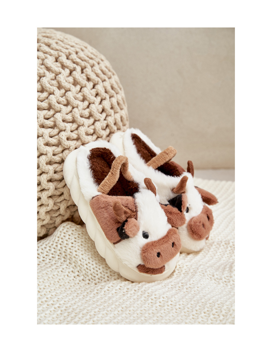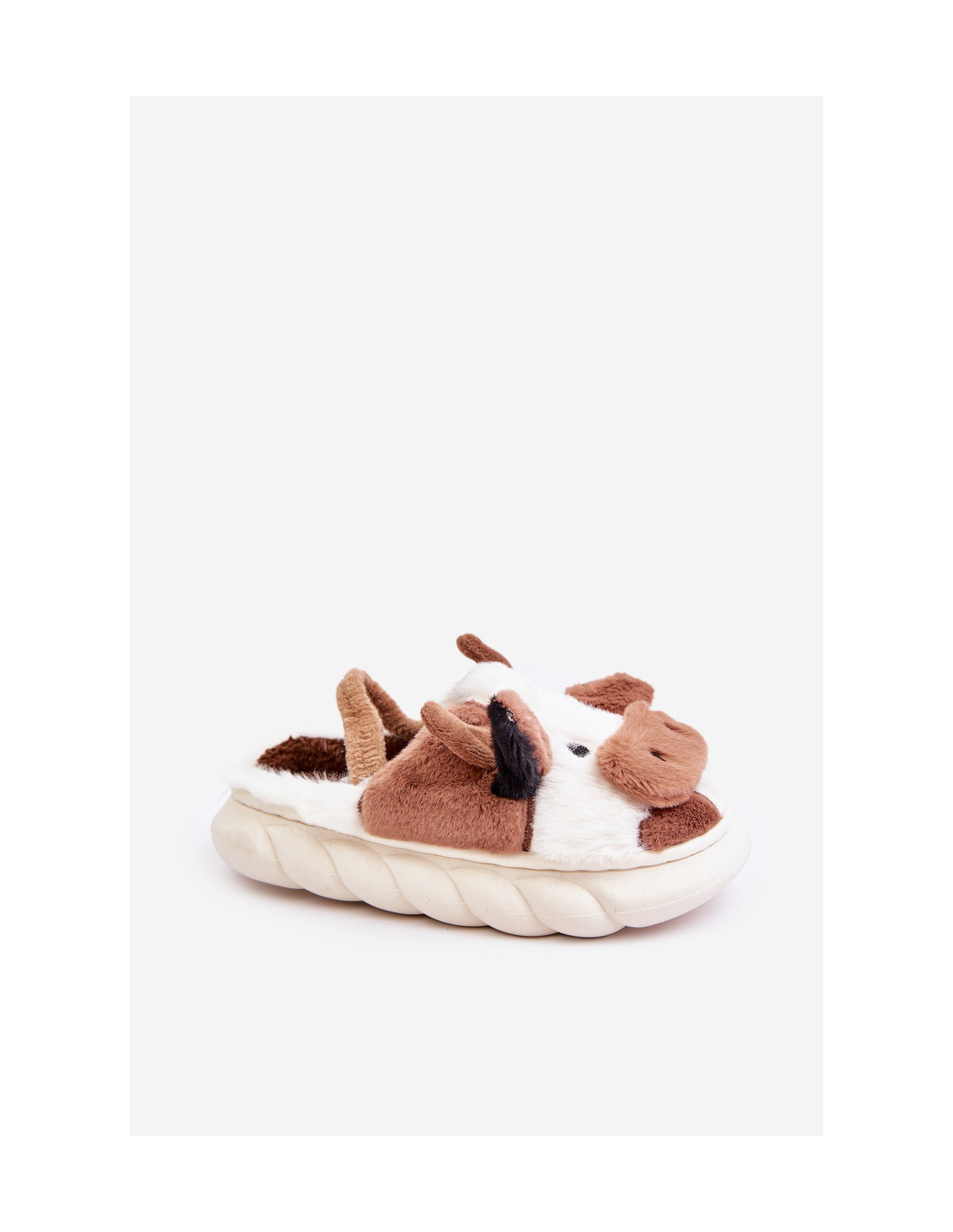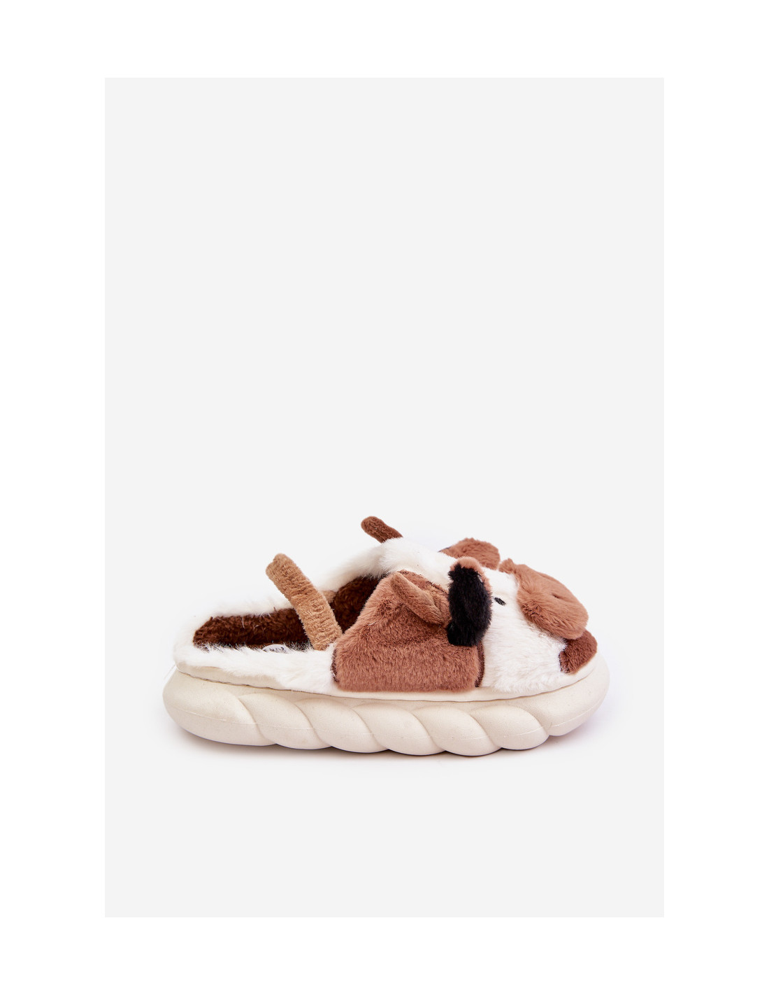 Vaikiškos pūkuotos šlepetės su karvės raštu rudos spalvos Tamorrin