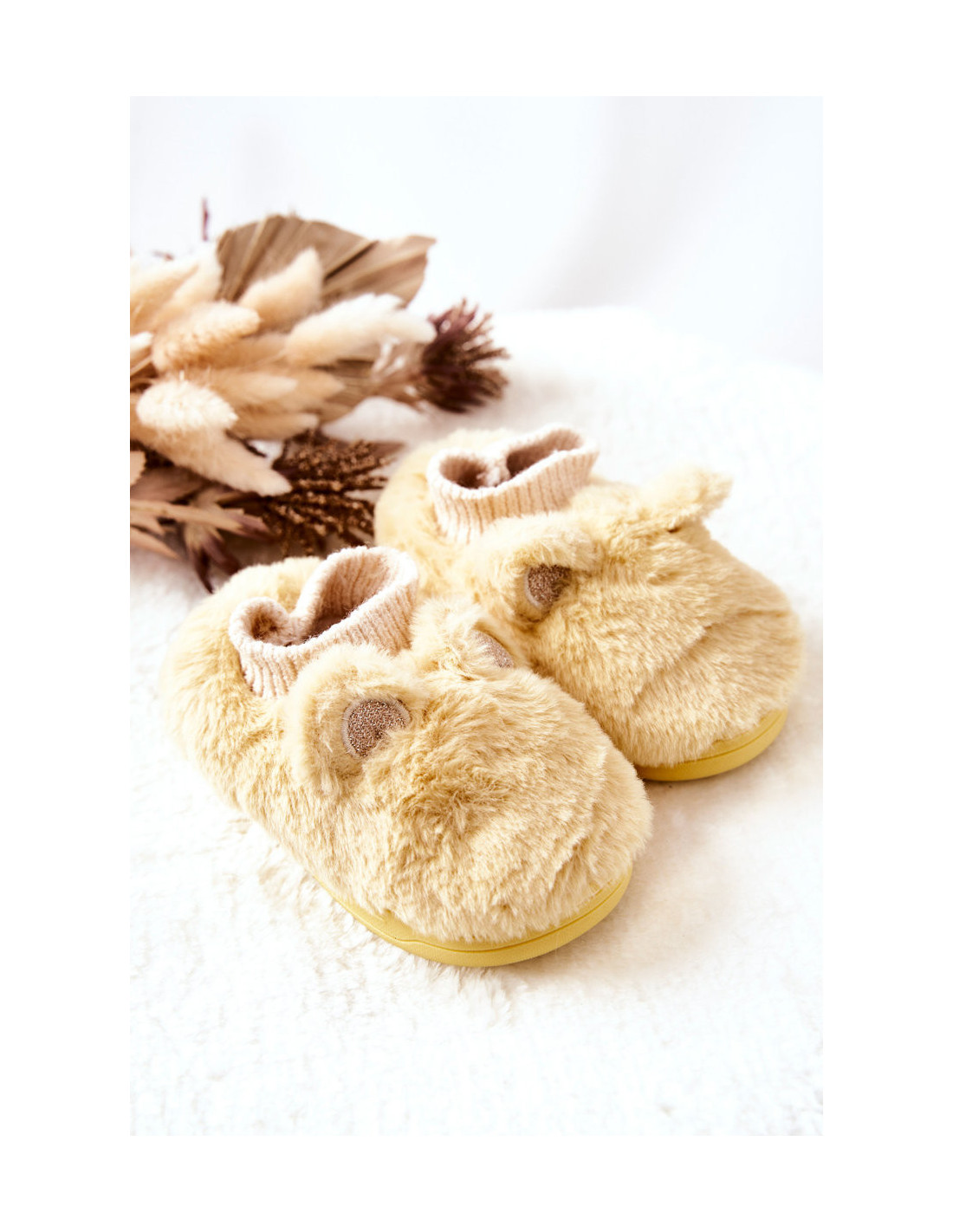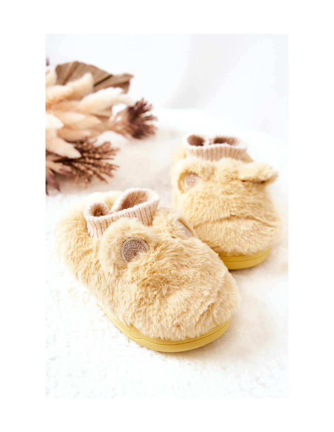 Nuostabios šlepetės iš pūkuotos medžiagos, malonios liesti. Jų priekyje yra ausų atvartai su blizgančiais siūlais ir ausinė, kuri gali prisitaikyti prie kojos dydžio. Šlepečių viduje yra švelnaus kailio pavidalo šildymas. Storas padas apsaugo nuo šaltos žemės. Šios šlepetės puikiai tiks šaltomis žiemos dienomis namuose! Rinkdamiesi dydį, vadovaukitės dydžių lentele.
