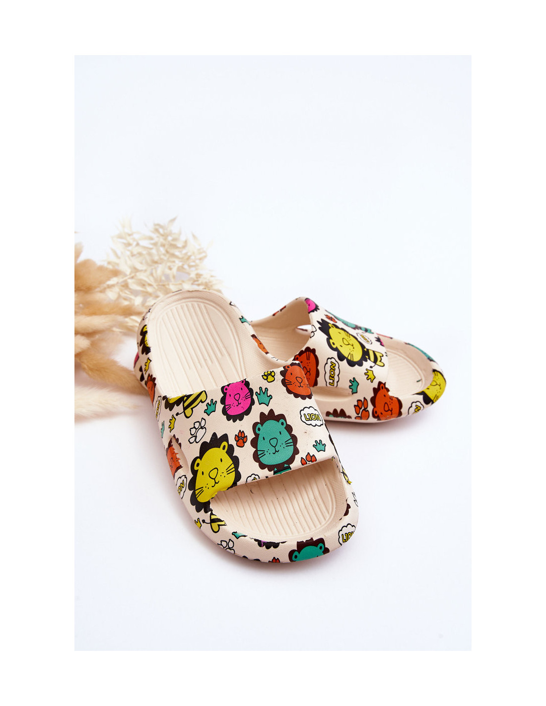 Lengvos, vaikiškos čiuožyklos viršuje pagamintos iš putplasčio. Šlepetės itin patogios ir puikiai tinka žaisti sode, baseine ar paplūdimyje. Iš išorės jie buvo papuošti liūto motyvu. Šlepetės buvo papildomai dedamos ant subtilios platformos. Rinkdamiesi dydį, vadovaukitės dydžių lentele.