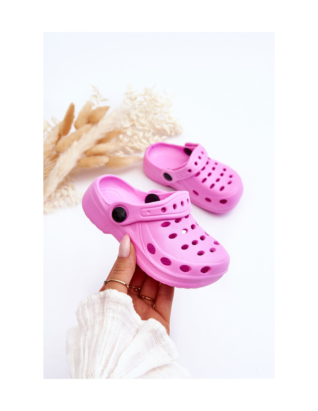 Spalvingos šlepetės patiems mažiausiems. Batai pagaminti iš vandeniui atsparios, putplasčio medžiagos EVA tipo medžiagos. Profiliuotas vidpadis ir kulno skaitiklis užtikrins Jūsų vaiko komfortą! Būtinai peržiūrėkite visą mūsų vaikiškų šlepečių kolekciją. Renkantis dydį, naudokite dydžių lentelę.