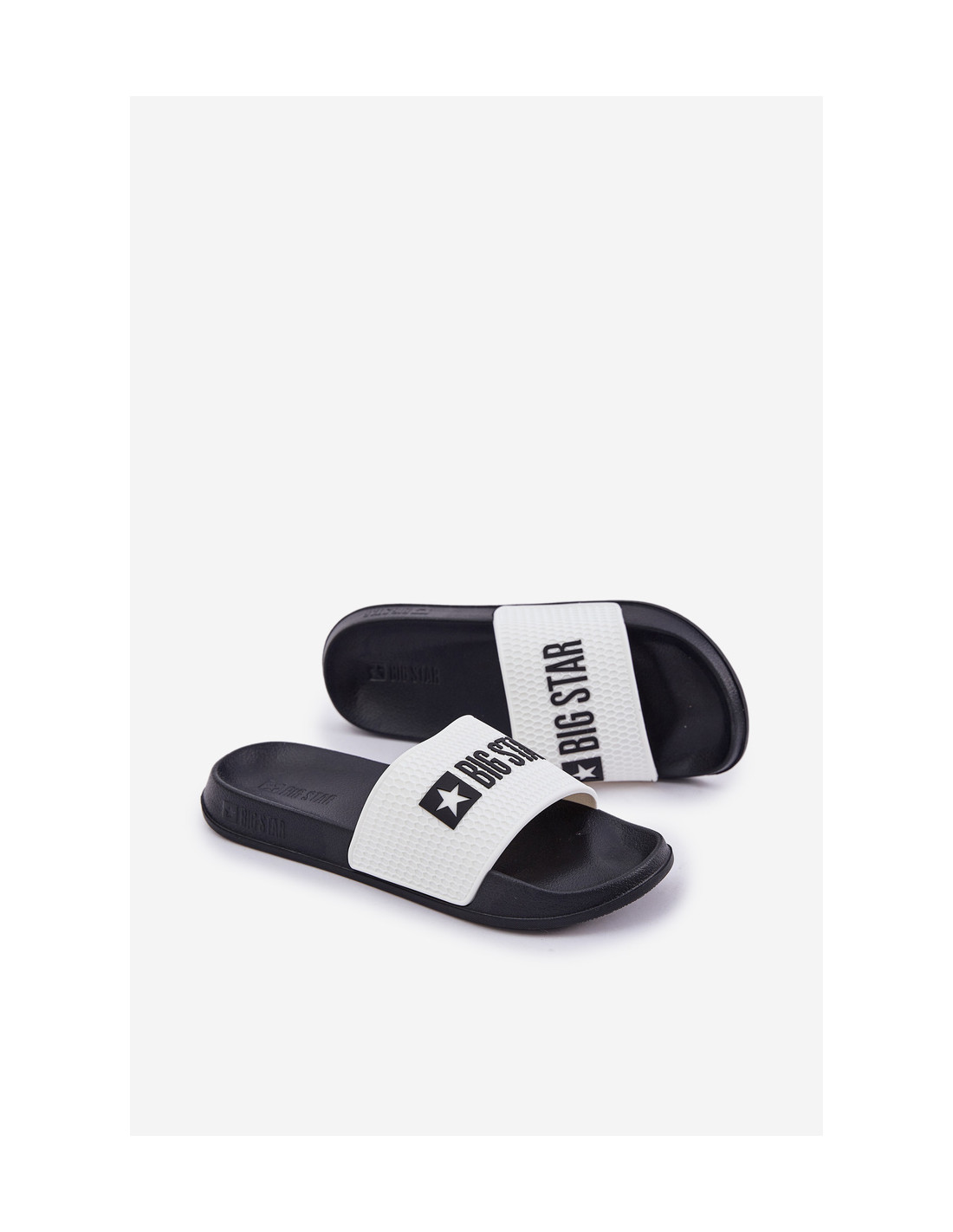 Lengvi ir patogūs šlepetės iš Big Star. Profiliuotas įdėklas pagamintas iš plastiko. Batų viršutinė dalis padengta gumine medžiaga korio raštu su Big Star prekės ženklo logotipu. Jis yra atsparus dilimui. Puikus modelis daugeliui vasaros sezonų. Batai pralaidūs orui ir lengvai valomi. Labai praktiškas ir patogus modelis vasarai. Jūsų kojos nebebus pavargusios! Šis modelis taip pat puikiai tinka prie baseino ar paplūdimio. Renkantis dydį, vadovaukitės dydžių lentele.