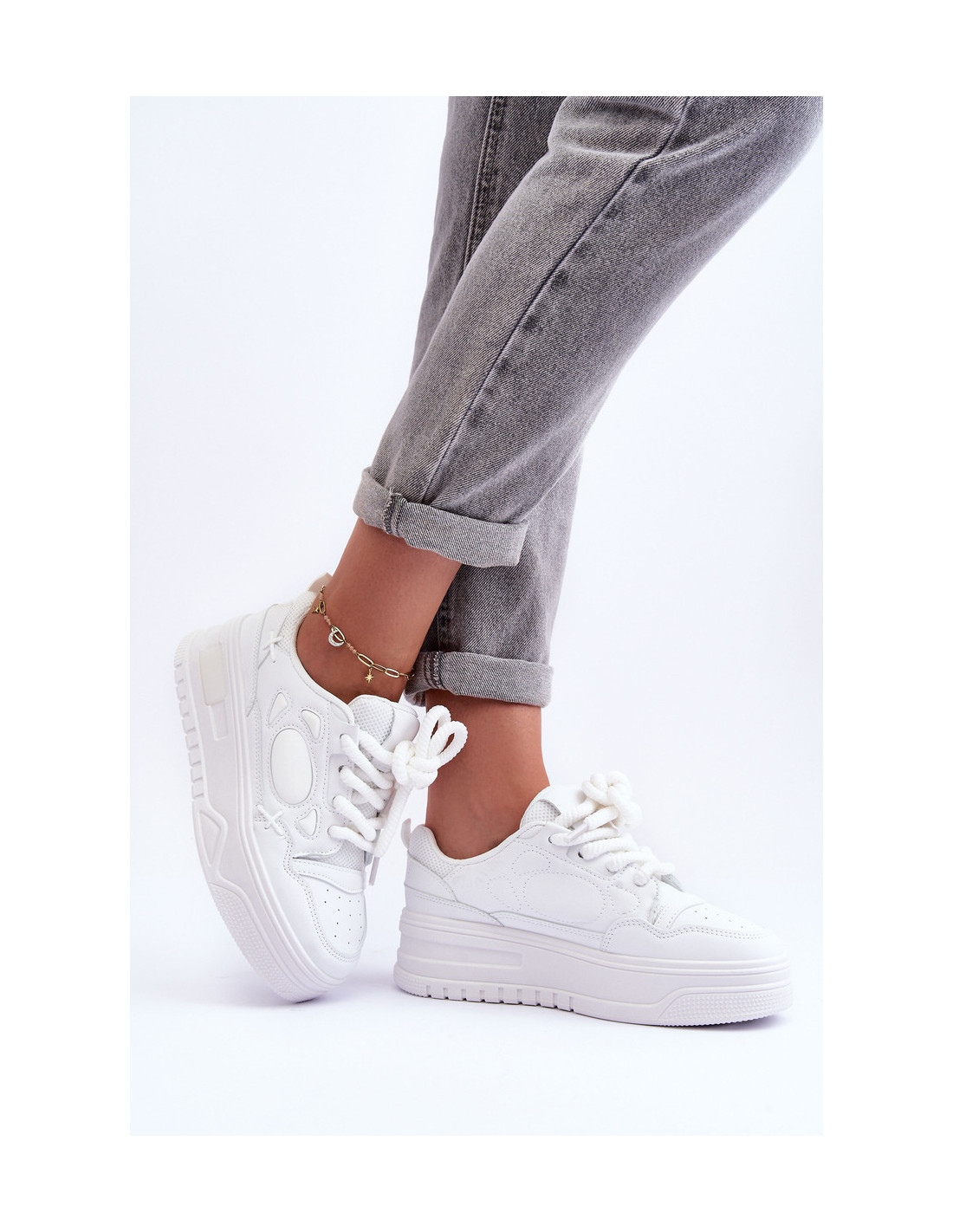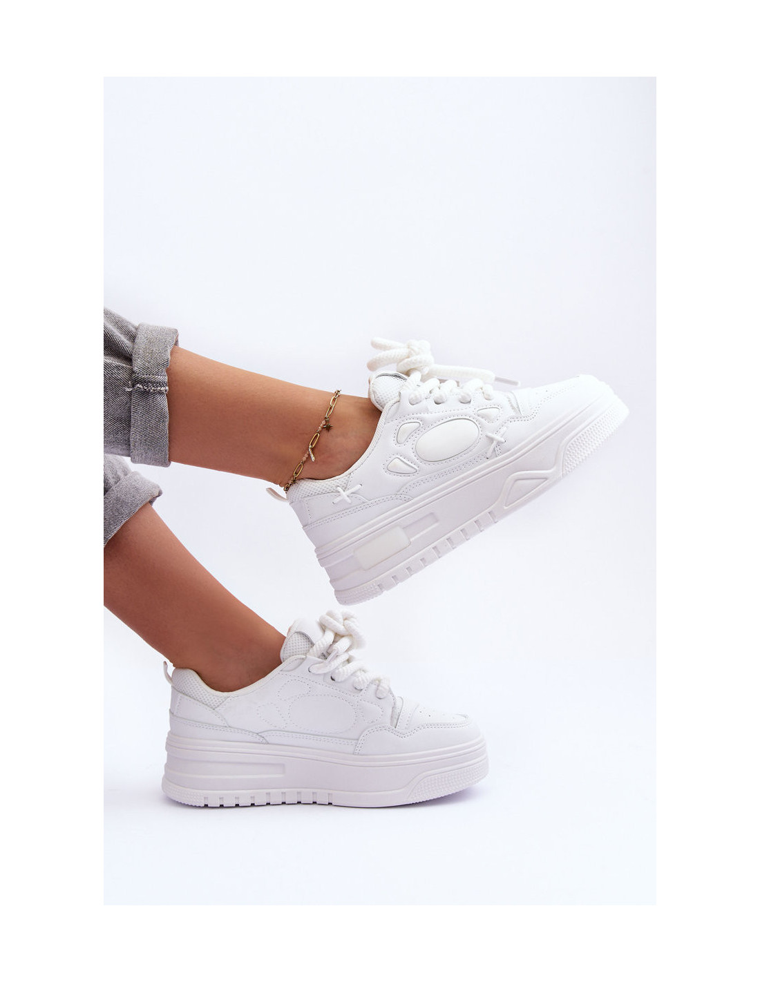 Moteriški sportbačiai su platforma, balti „Finos“.