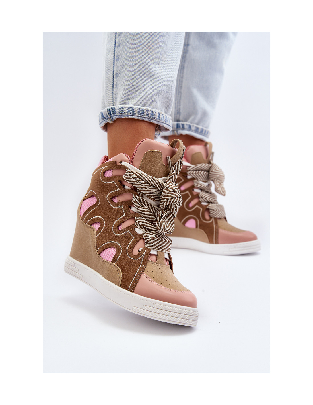 Moteriški sportbačiai, pagaminti iš eko odos ir tekstilės medžiagos derinio. Uždėkite ant paslėpto pleišto, kuris švelniai pakels jūsų figūrą. Šis modelis turi dvigubą suvarstymą. Šį stilių tikrai turėtumėte turėti savo garderobe, jei vertinate madingą dizainą! Renkantis dydį, vadovaukitės dydžių lentele.