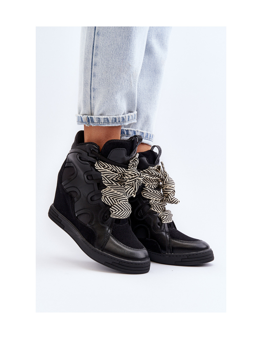 Moteriški sportbačiai su pleištu, juodi Leoppa