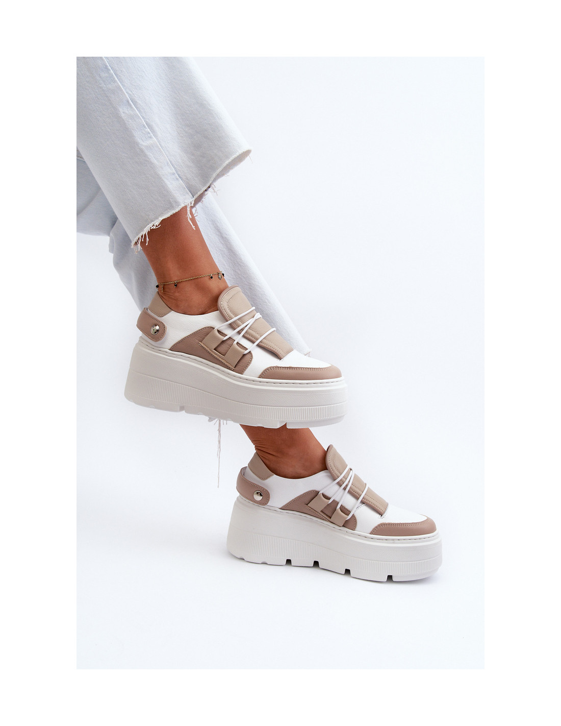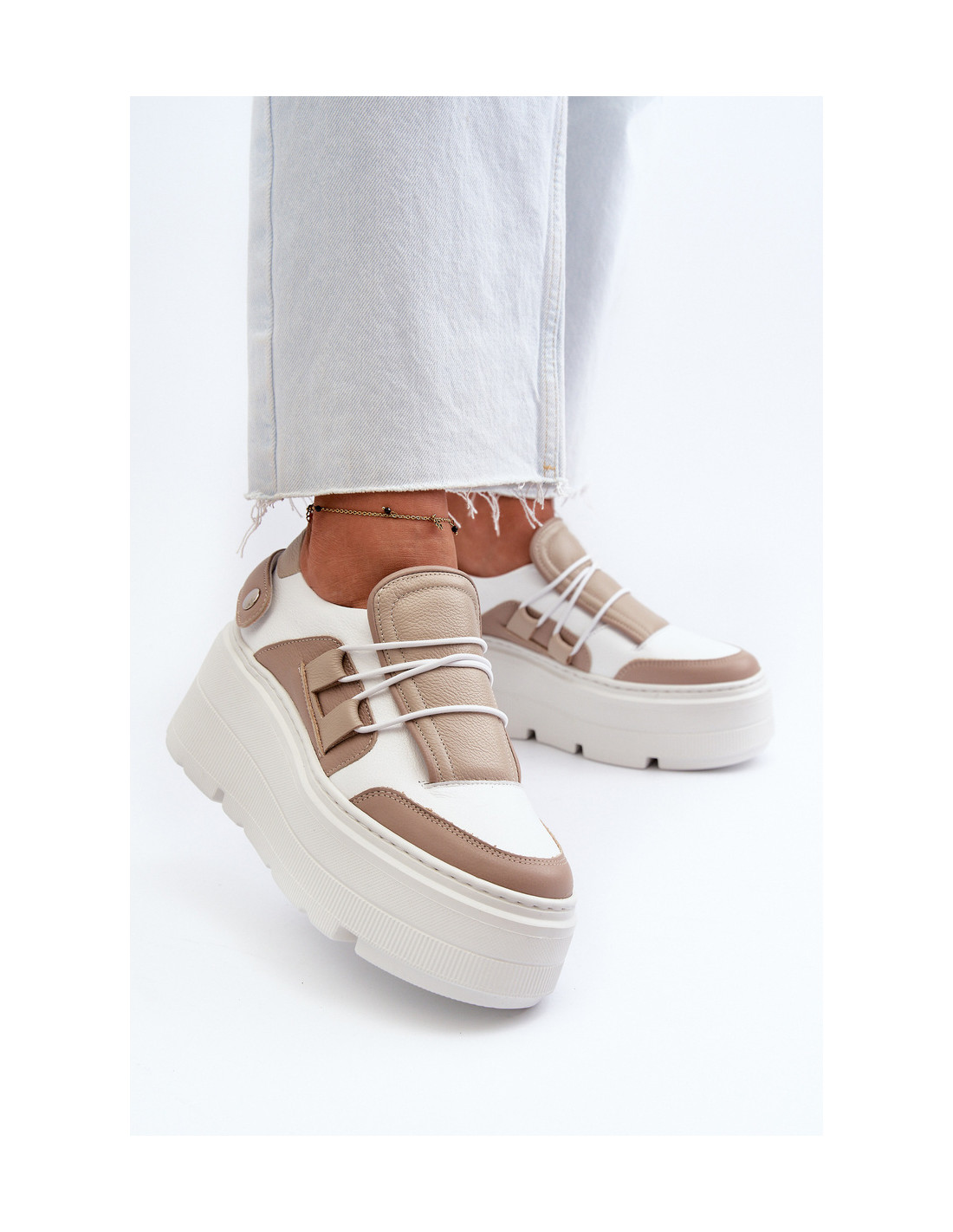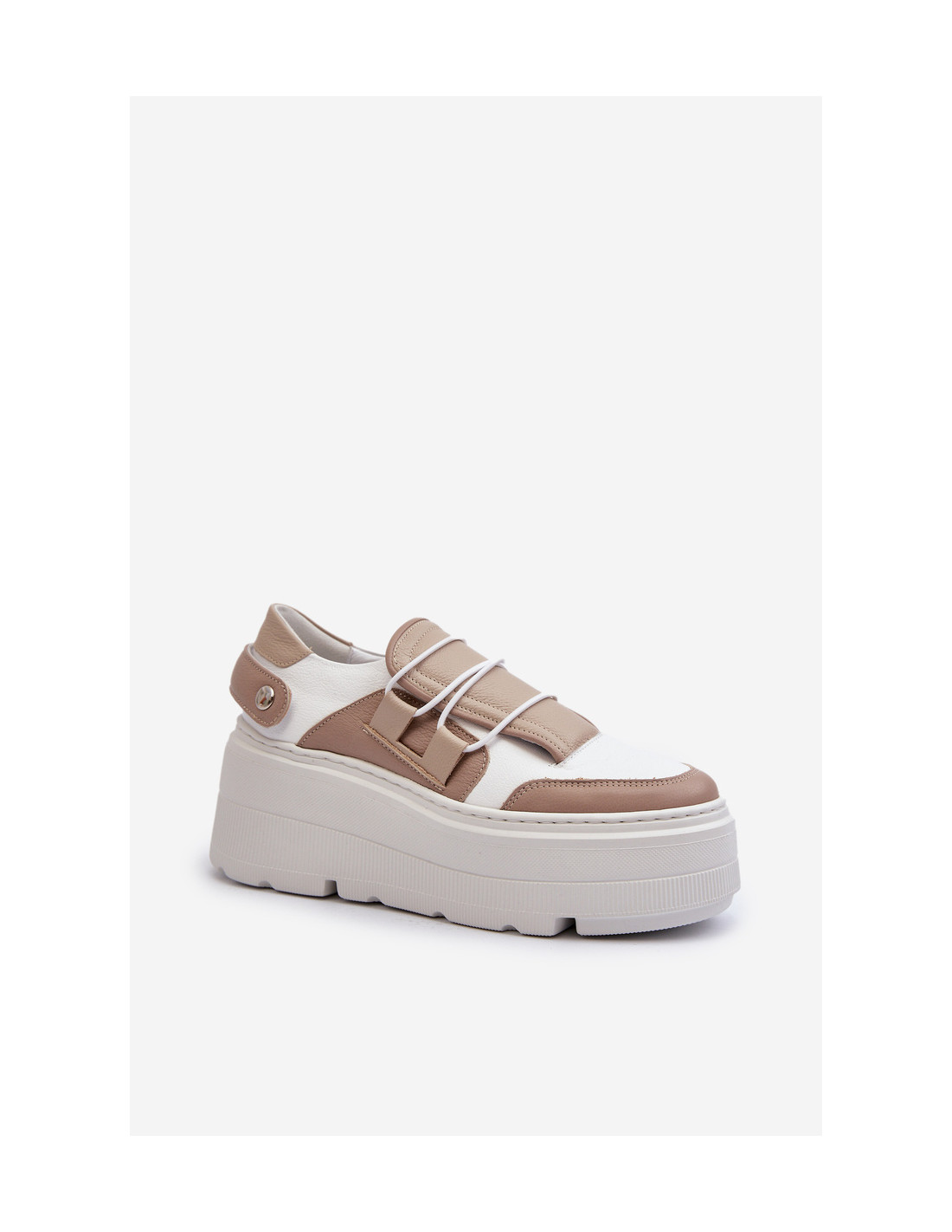 Unikalūs moteriški sportbačiai iš aukštos kokybės natūralios odos. Masyvi platforma suteikia jiems unikalų stilių ir atrodo itin madingai. Odinis vidpadis garantuoja komfortą kiekvieno naudojimo metu, o suapvalinti pirštai suteikia papildomos elegancijos. Jie puikiai tinka kasdieniam stiliui, suteikiant jiems sportiško charakterio! Renkantis dydį, vadovaukitės dydžių lentele.