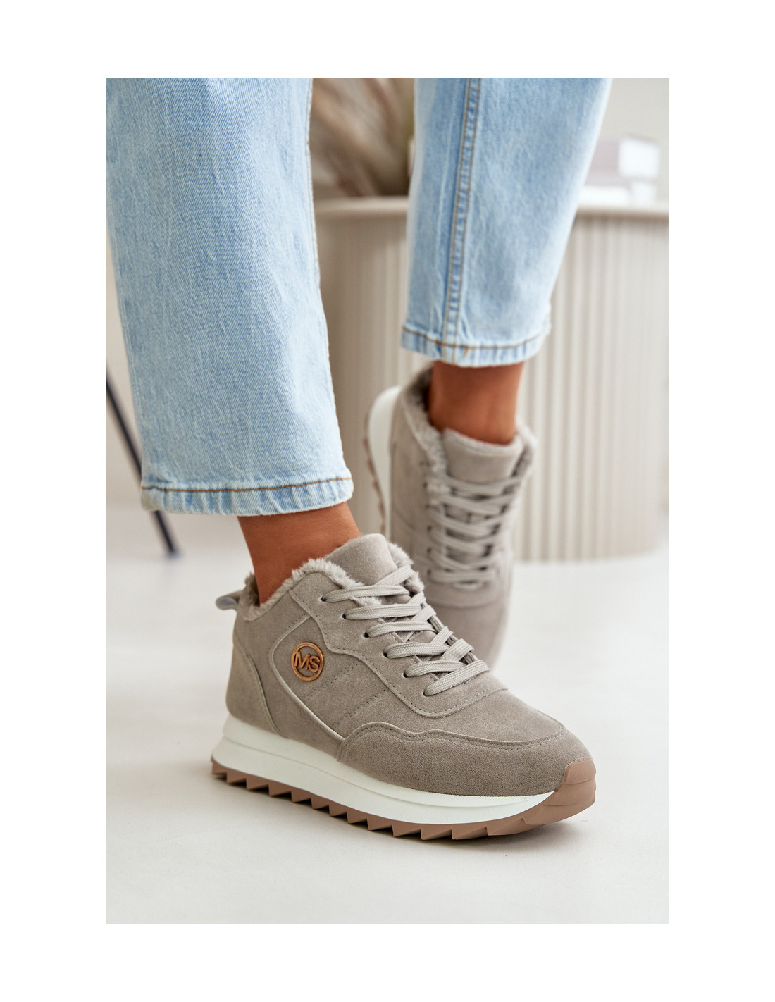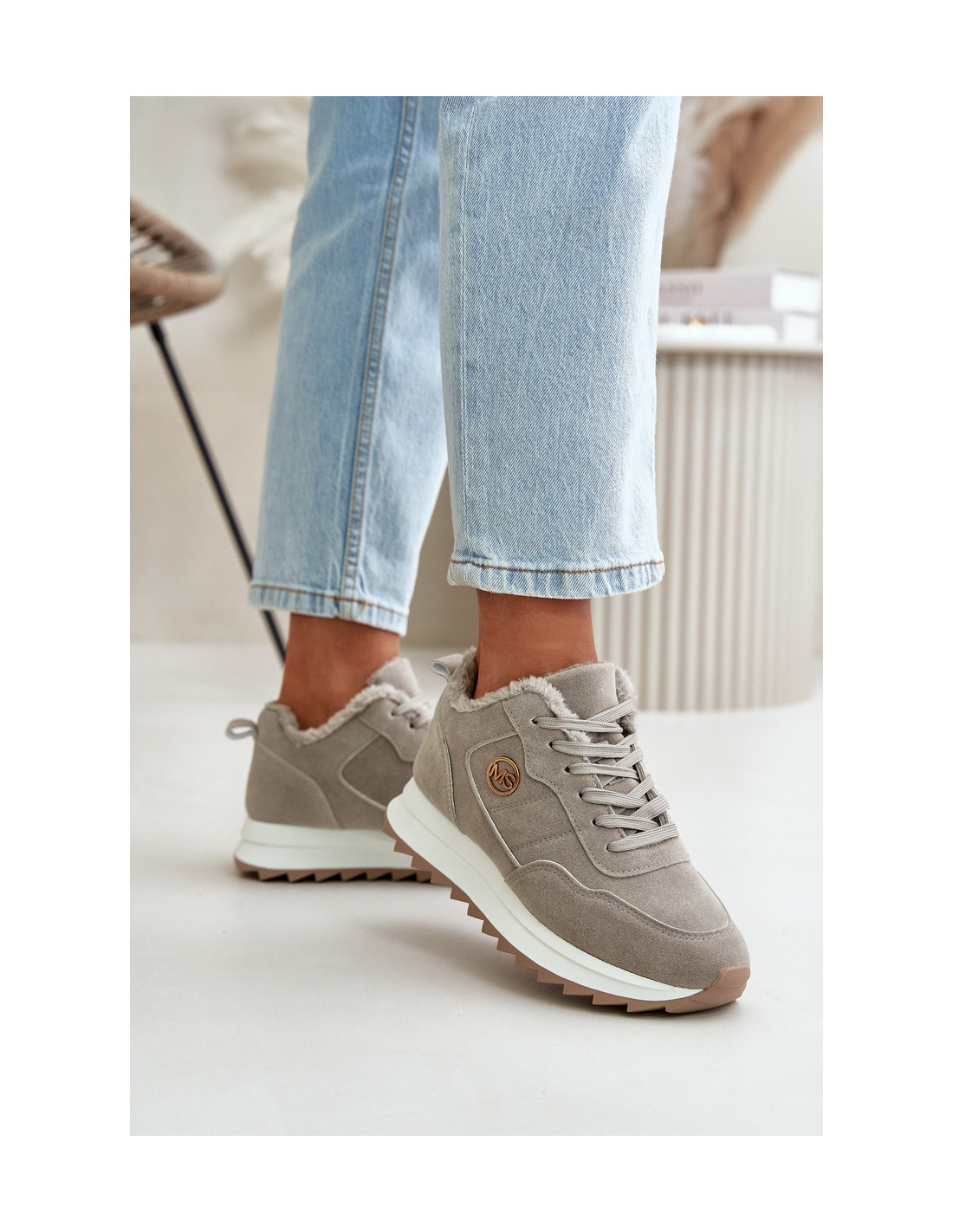 Moteriški sportiniai bateliai su kailiuku. Pagaminta iš eko odos ir montuojama ant platformos. Viršutinės dalies išorėje yra nedidelis aukso spalvos plastikinis papuošimas. Klasikinis suvarstomas modelis. Renkantis dydį, vadovaukitės dydžių lentele.