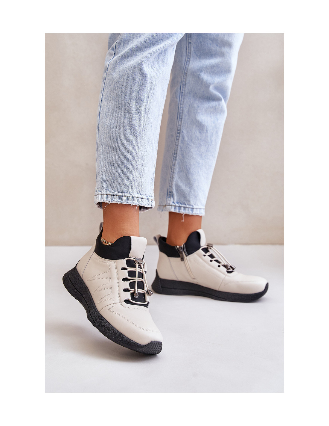 Sportiniai bateliai iš natūralios odos. Pastatykite ant guminio pado. Apšiltintas su batų antklode viduje, todėl jie yra idealus pasirinkimas šaltesnėms dienoms. Užsegamas užtrauktuku ir papildomai su raišteliu. Suapvalinti kojų pirštai. Jūs tikrai turėtumėte juos turėti! Renkantis dydį, vadovaukitės dydžių lentele.