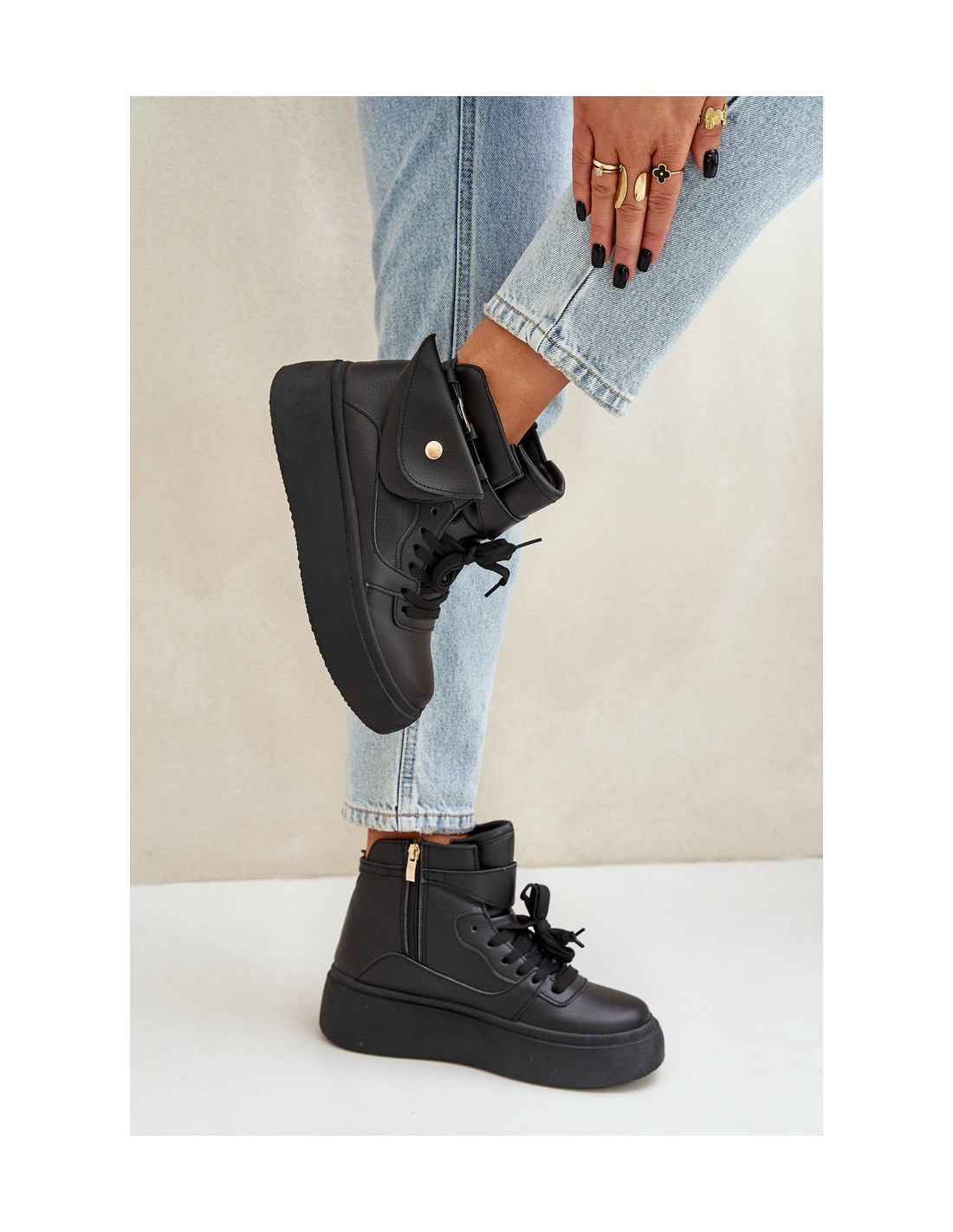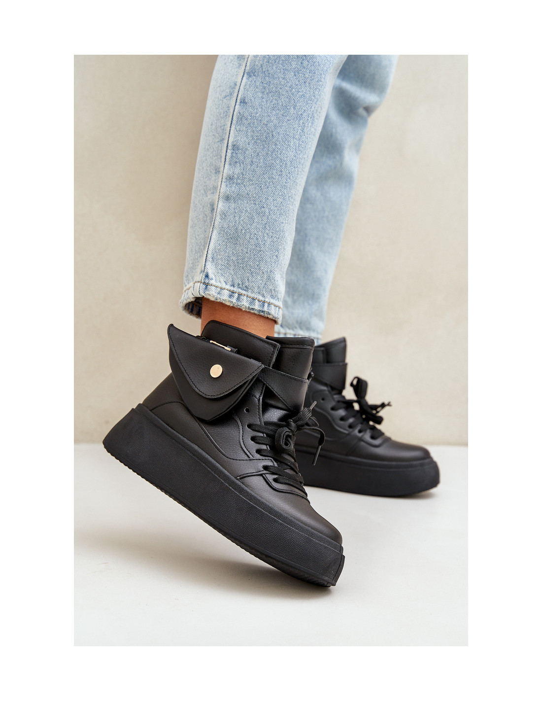 Moteriški aukšti sportbačiai iš aukštos kokybės eko odos – modernaus stiliaus ir patogumo derinys. Ant masyvios platformos jie suteikia komfortą ir papildomą amortizaciją. Viršutinė dalis buvo praturtinta mažu, nuimamu maišeliu, suteikiančiu originalumo. Modelis išsiskiria suapvalintais pirštais ir klasikiniais raišteliais, kurie leidžia puikiai priglusti prie pėdos. Sportbačiai yra puikus miesto stiliaus elementas, suteikiantis madingą gatvės aprangos išvaizdą. Puikus pasirinkimas moterims, kurios vertina funkcionalumą ir unikalų dizainą! Renkantis dydį, vadovaukitės dydžių lentele.