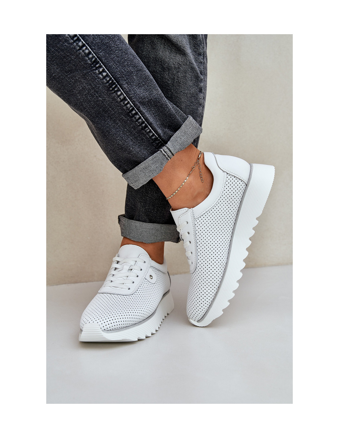 D&A LR51-629 blizgūs odiniai platforminiai sportbačiai, balti