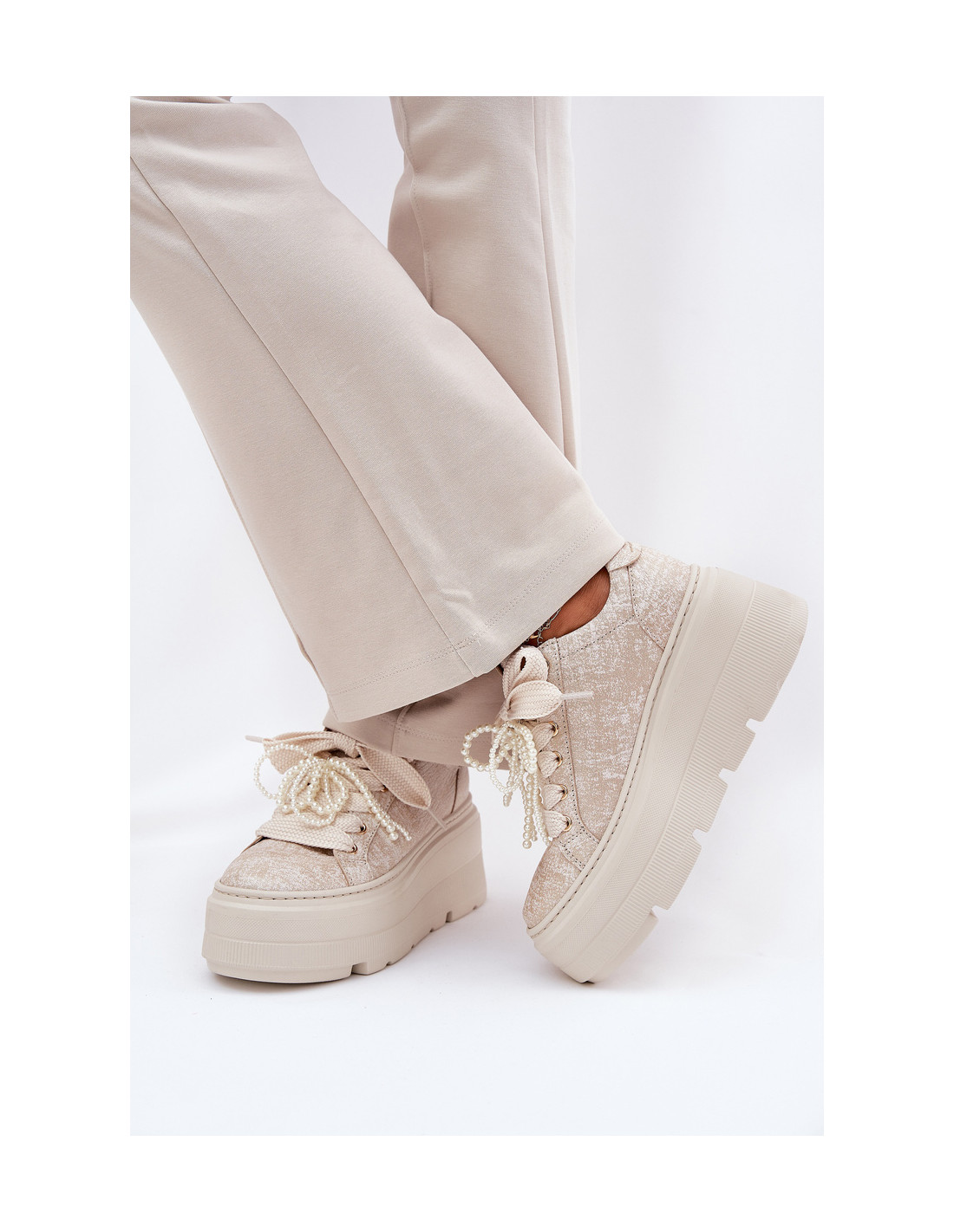 CheBello 4658 auksiniai odiniai platforminiai sportbačiai