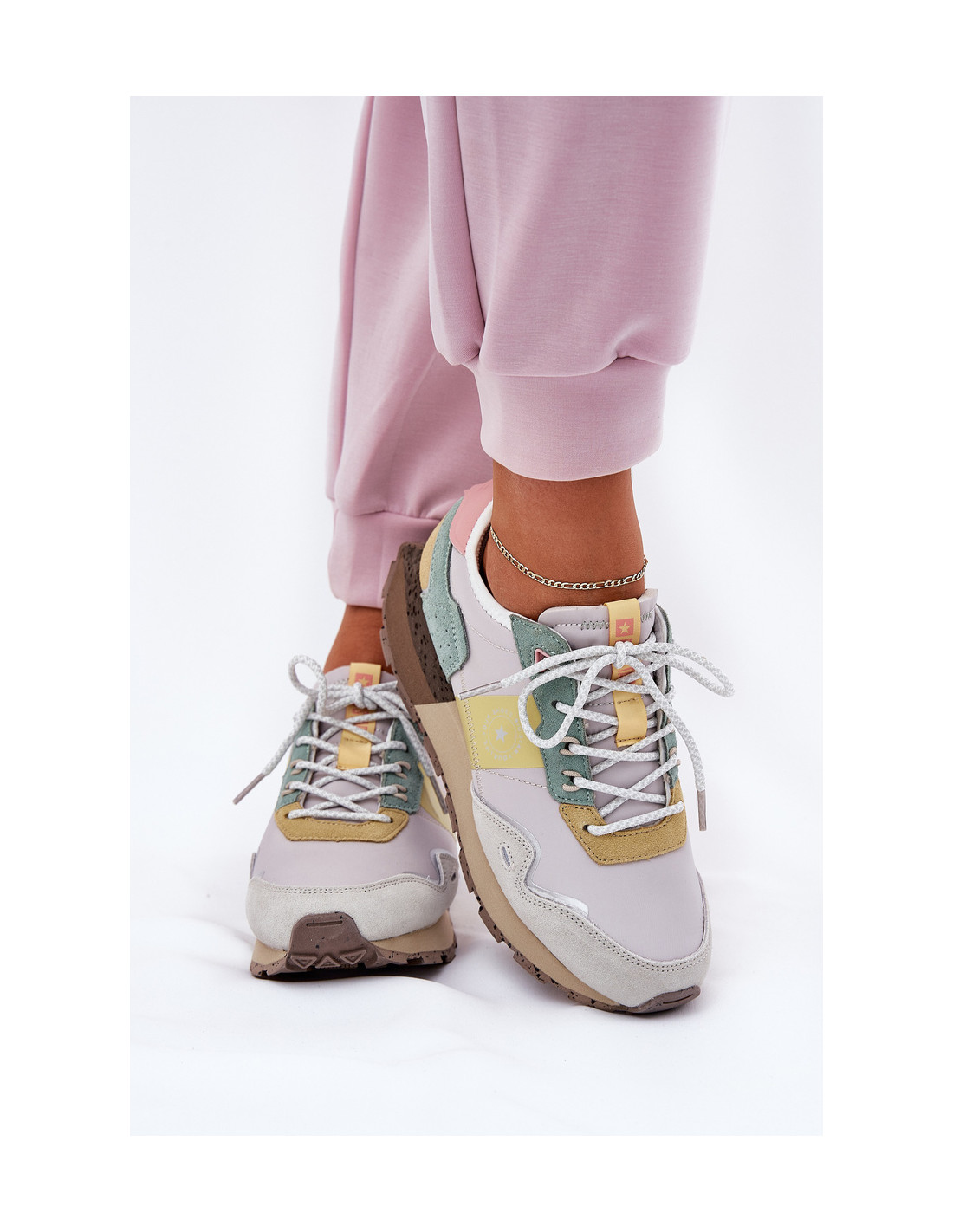 Moteriški Big Star sportbačiai, pastatyti ant platformos, kuriuose stilius derinamas su funkcionalumu. Pagaminti iš tekstilės ir natūralios zomšos derinio, suteikia lengvumo ir ilgaamžiškumo. Įrengtas naujoviškas HI-POLY SYSTEM įdėklas, pagamintas iš perdirbtų medžiagų. Šis įdėklas yra atsparus trinčiai ir deformacijai, efektyviai sugeria drėgmę ir sugeria smūgius, suteikia komfortą net ir intensyvios veiklos metu. Tai tobula avalynė kasdieniam stiliui, kurioje patogumas derinamas su modernia išvaizda. Renkantis dydį, vadovaukitės dydžių lentele.