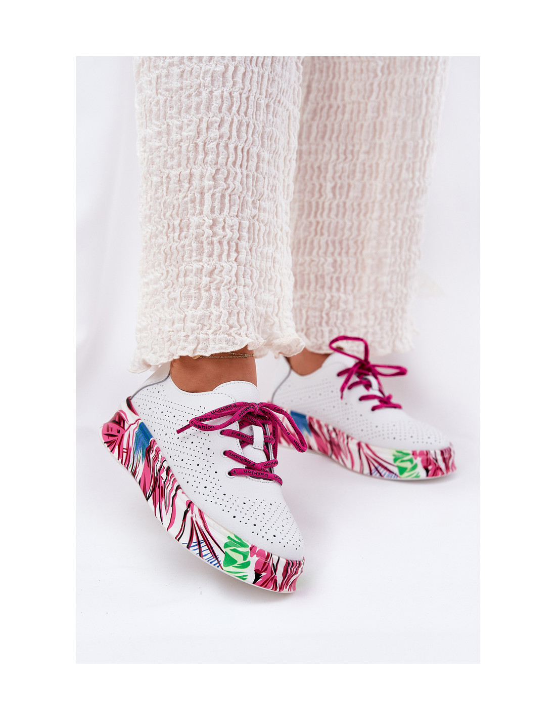 Moteriški odiniai sportbačiai ant raštuotos platformos Vinceza 88017 balti