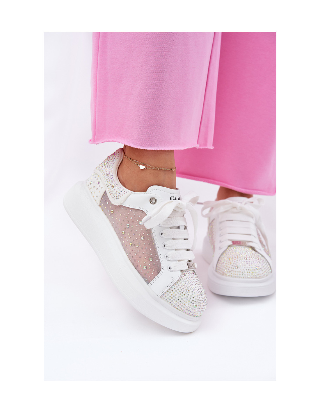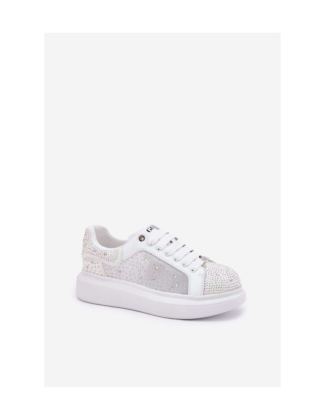 GOE prekės ženklo moteriški sportiniai bateliai. Pagaminta iš natūralios odos ir tekstilės medžiagų derinio. Dekoruoti daugybe kristalų, kurie suteikia jiems unikalų blizgesį ir išskiria juos iš kitų modelių. Ant platformos jie užtikrina stabilumą ir komfortą, o suapvalinti pirštai garantuoja komfortą visą dieną. Šie stilingi batai bus puikus pasirinkimas, kuris suteiks charakterio bet kokiai kasdieninei aprangai. Renkantis dydį, vadovaukitės dydžių lentele.