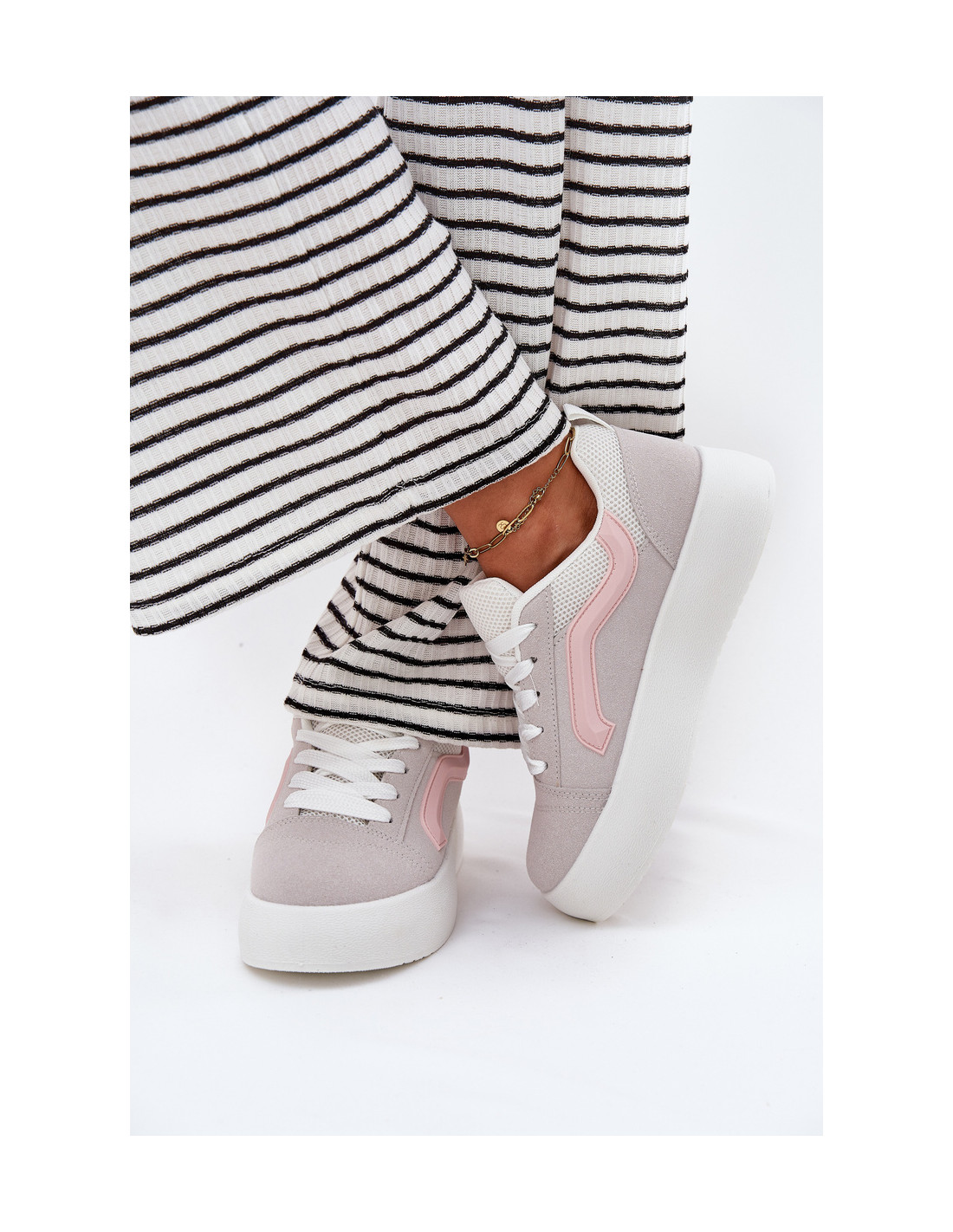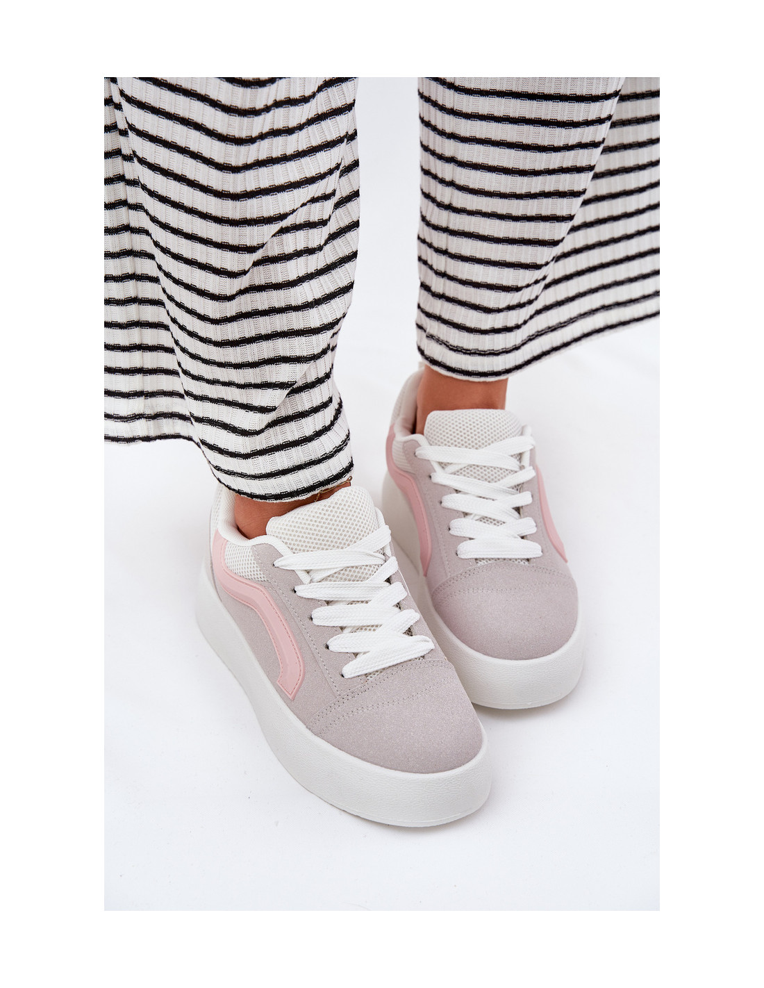 Šie moteriški ekologiškos zomšos sportbačiai – puikus kasdienis pasirinkimas, derinantis stilių ir komfortą. Įsitaisę ant platformos, jie suteikia komfortą ir papildomo stabilumo. Apvalios noselės leidžia lengvai judėti, o minkštas, audiniu aptrauktas vidpadis užtikrina komfortą visą dieną. Klasikinis šių sportbačių dizainas puikiai dera prie kasdienės aprangos, nes suteikia funkcionalumo ir mados įvaizdžio. Renkantis dydį, vadovaukitės dydžių lentele.