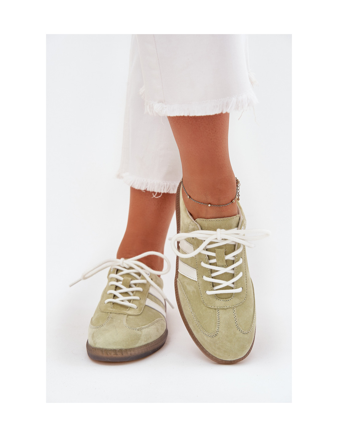 Šie moteriški sportbačiai, pasiūti iš natūralios odos ir zomšos derinio, su žemu viršutiniu dizainu, puikiai tinka toms, kurios vertina patogumą ir madingą išvaizdą. Odinis vidpadis užtikrina komfortą visą dieną, o stilingas dizainas leidžia juos avėti prie kelnių, sijonų ir suknelių. Jie tikrai taps jūsų mėgstamiausiu kasdieniu aksesuaru. Renkantis dydį, prašome vadovautis dydžių lentele.