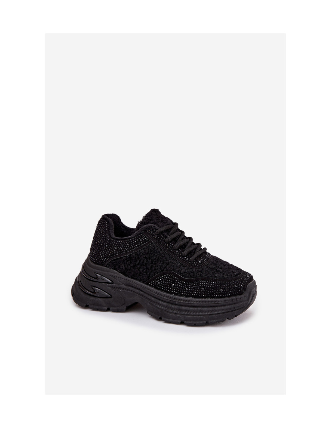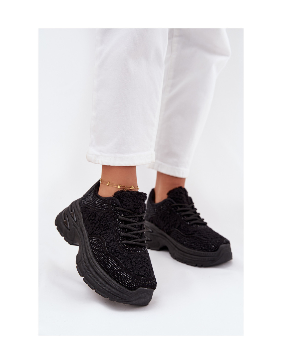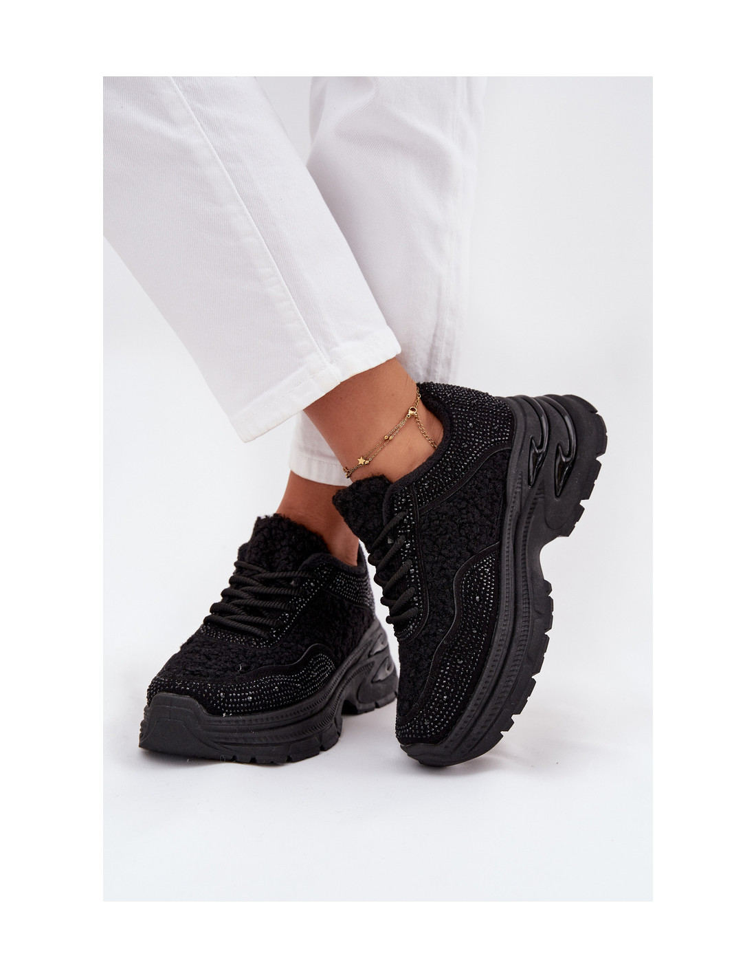 Zarika moteriški sportbačiai su cirkoniais ir ėriuko kailiu, juodi