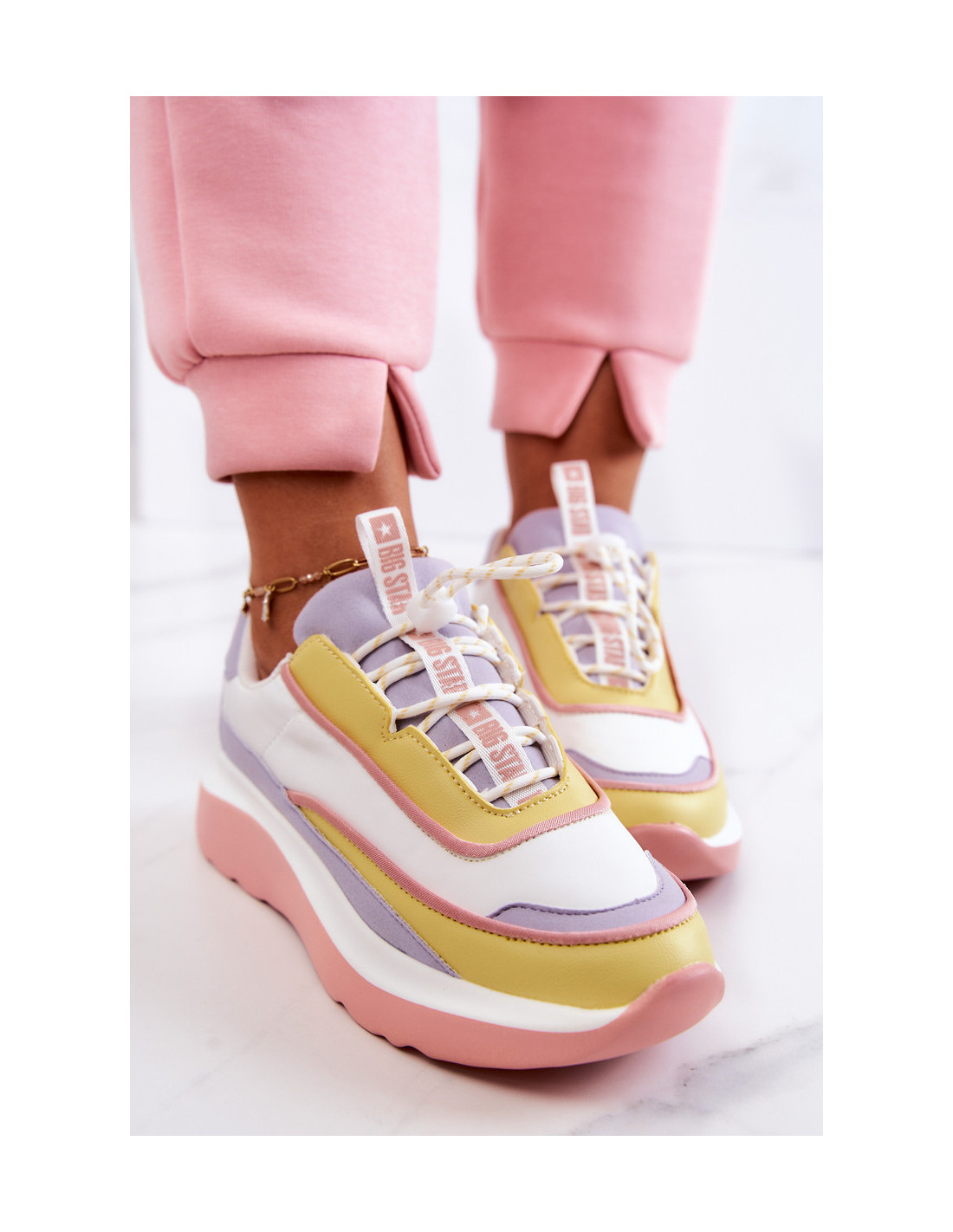 Unikalūs moteriški sportiniai batai iš Lenkijos prekės ženklo BIG STAR. Jie pagaminti iš eko odos ir audinio derinio. Sportiniai bateliai yra neįtikėtinai lengvi ir patogūs. Jie turi Memory Foam System vidpadį, kuris prisimena pėdos formą, puikiai priglunda, sugeria smūgius, yra atsparus deformacijai ir leidžia išgaruoti drėgmę bei reguliuoti temperatūrą. Aukšta platforma užtikrina puikią izoliaciją nuo žemės. Renkantis dydį, naudokite dydžių lentelę.