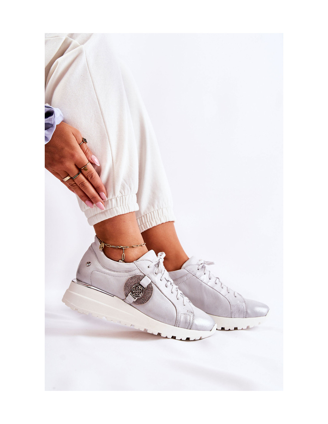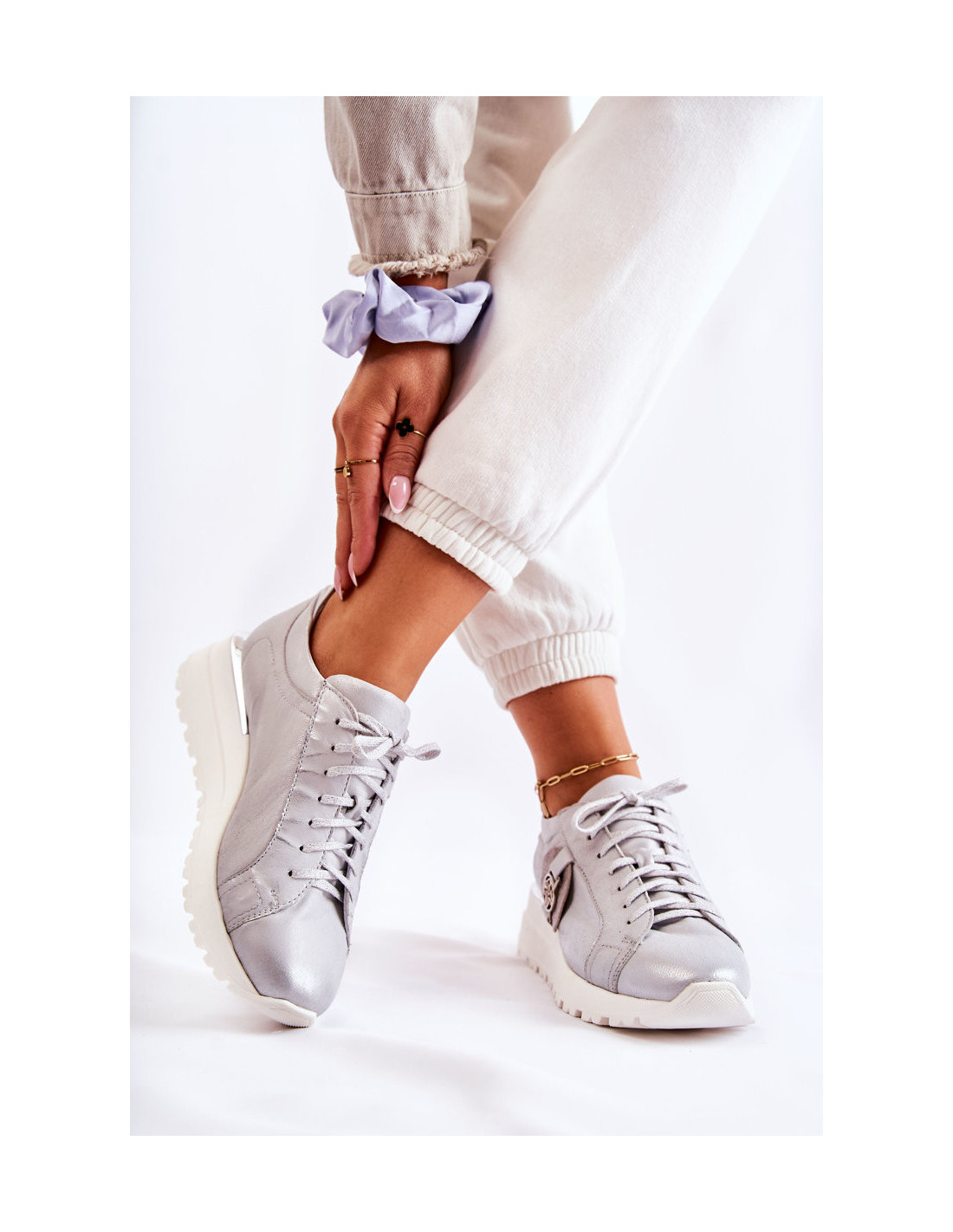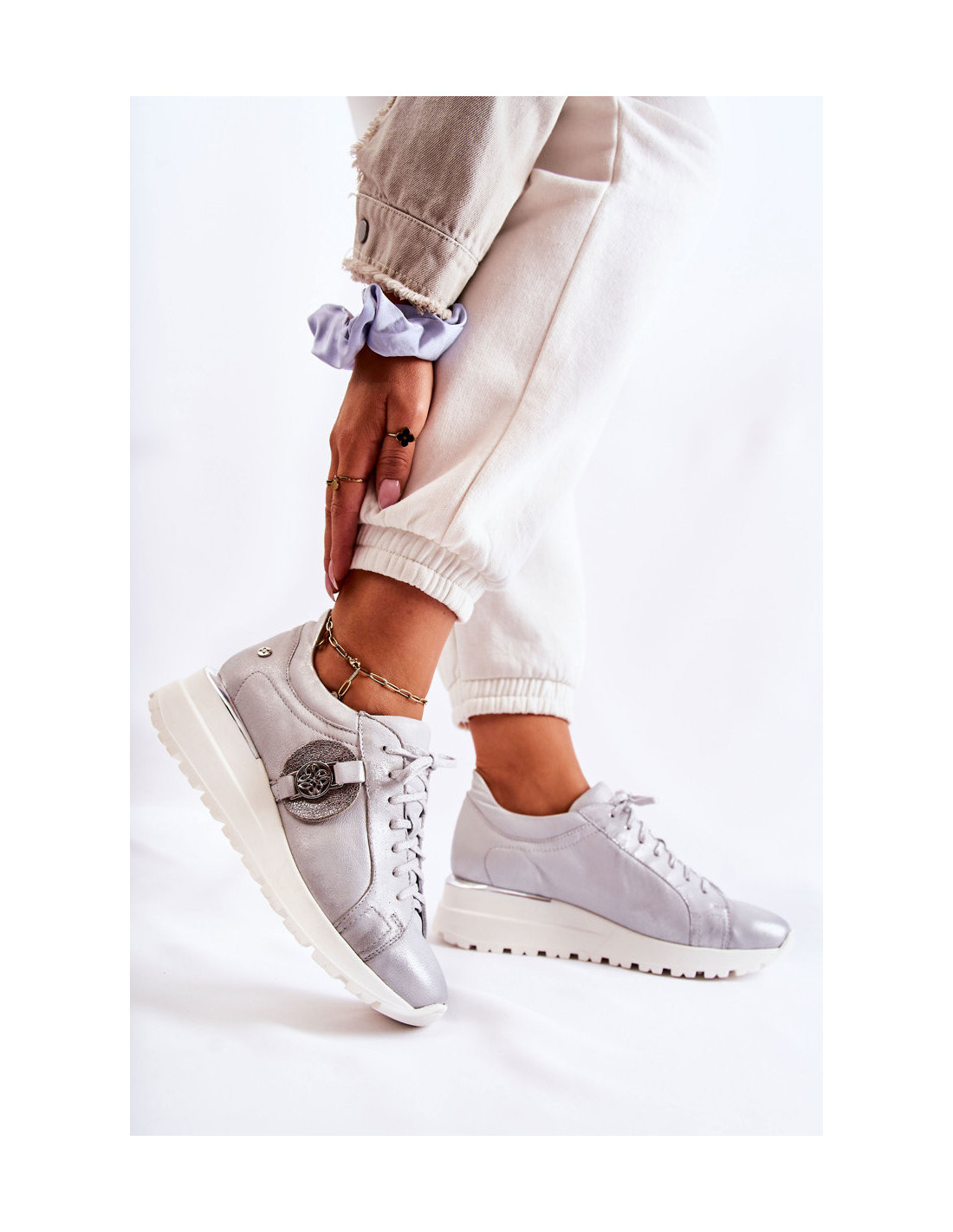 Odiniai sportiniai batai ant pleišto Maciejka 05492-11 sidabro