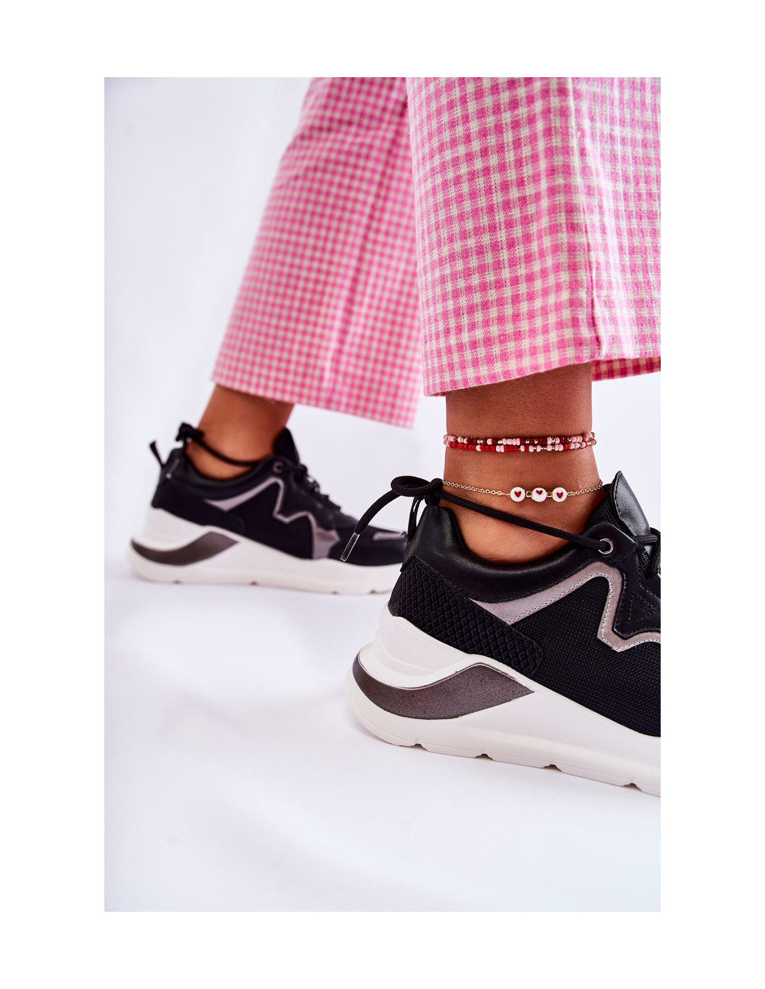Madingi sportiniai bateliai moterims yra pagaminti iš erdvios medžiagos su eko odos elementais. Viršutinė kulkšnis. Modelis su įrišimu, kuris leis tinkamai priderinti avalynę prie kojų pločio. Batai montuojami ant pleišto kulno ir platformos. Dėl eko odos įdėklo sportbačius patogu naudoti. Modelis su apvaliu pirštu. Renkantis dydį, naudokite dydžių lentelę.