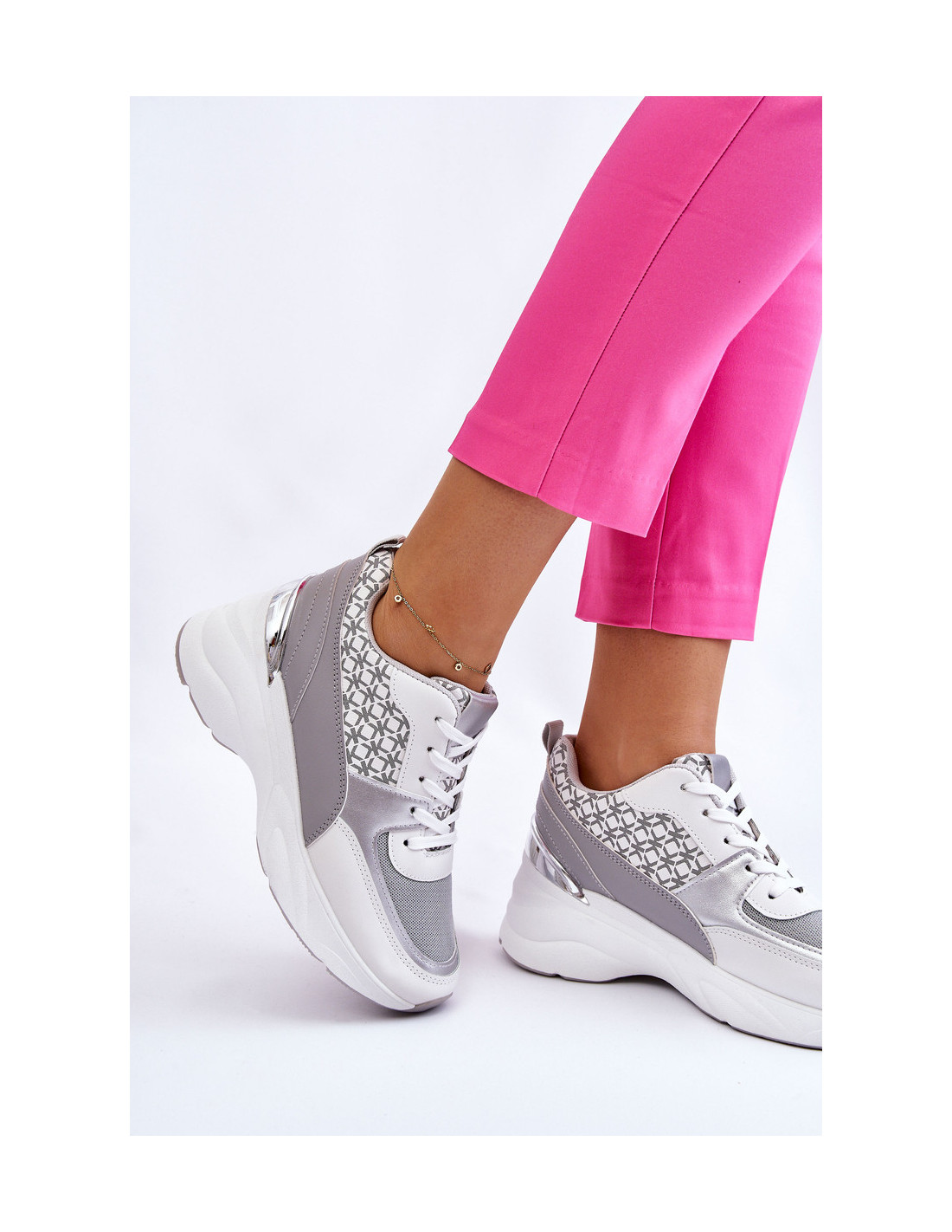 Moteriški sportiniai bateliai ant platformos Balta ir pilka Ferrina