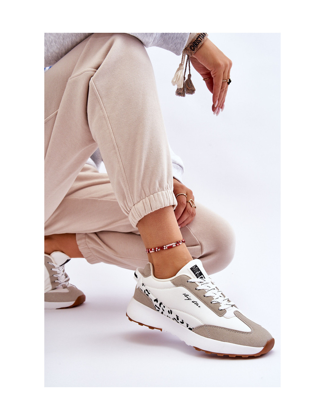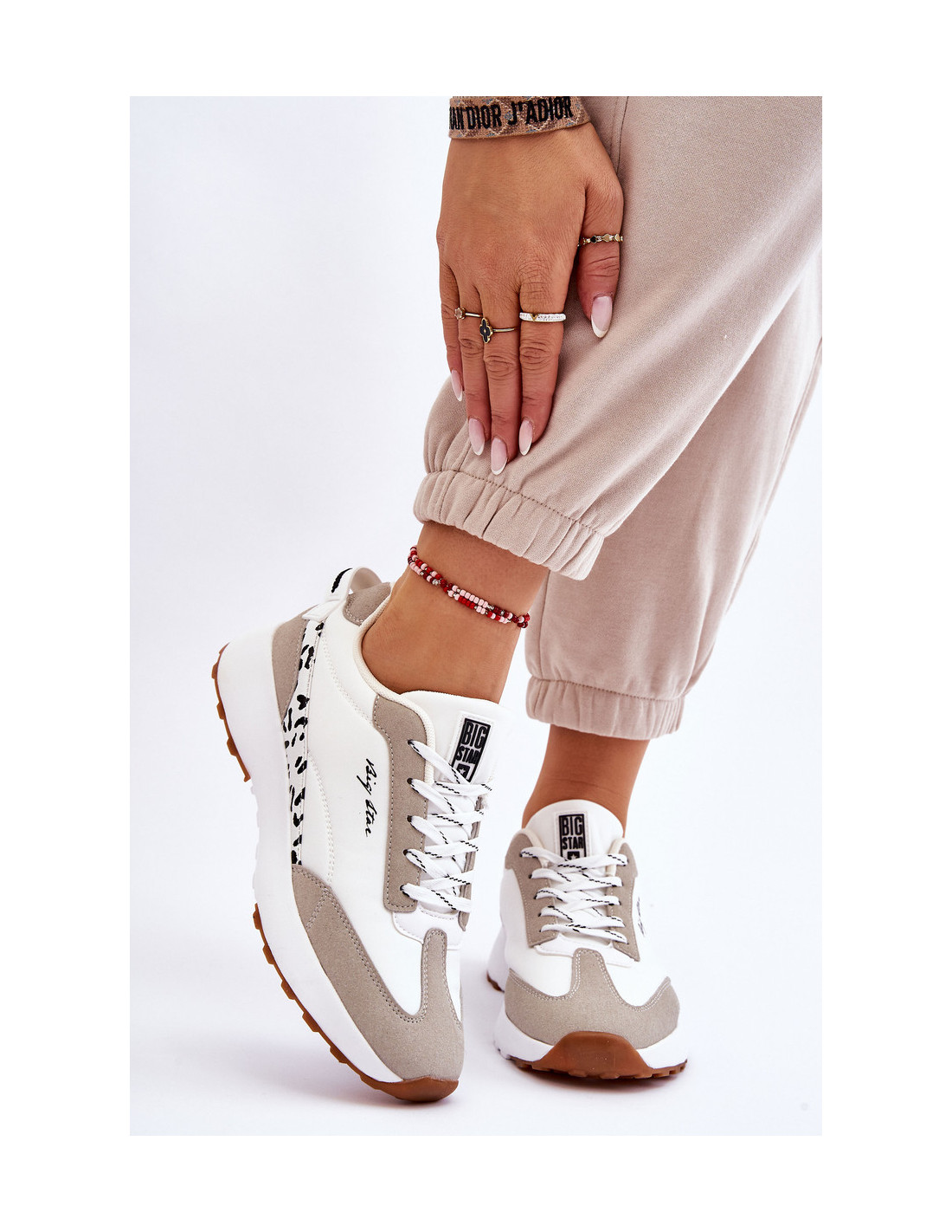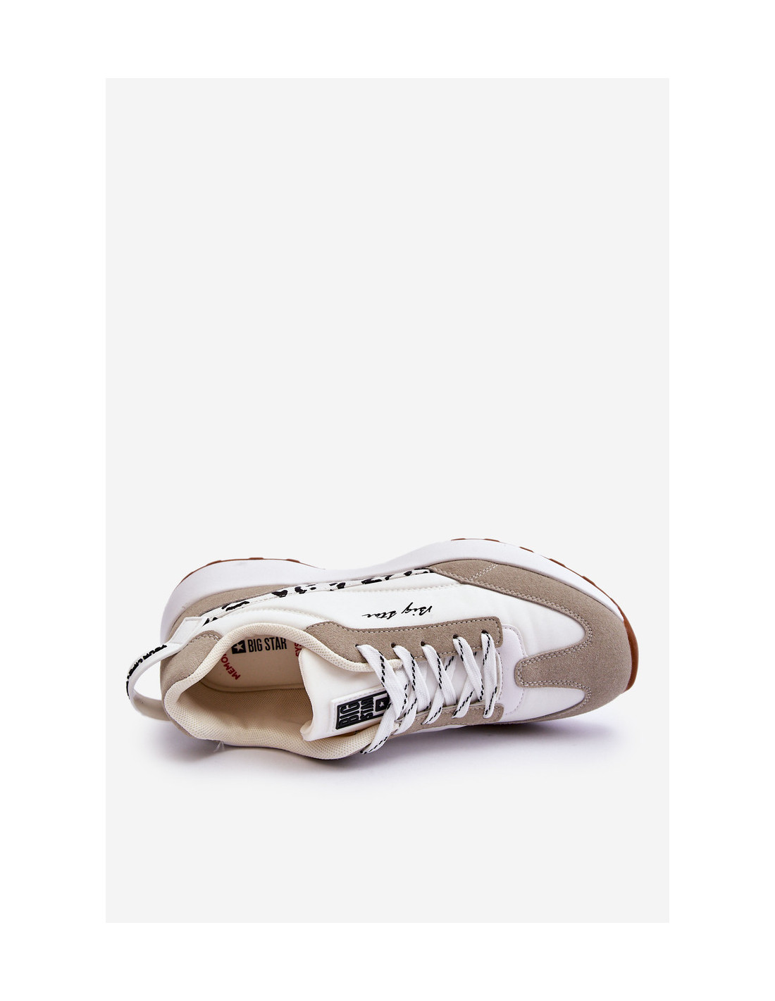 Madingi, moteriški Big Star sportbačiai yra pagaminti iš audinio ir ekologiškos odos. Modelis turi klasikinį suvarstymą. Memory Foam System vidpadis prisimena pėdos formą, puikiai priglunda, sugeria smūgius, yra atsparus deformacijai ir leidžia išgaruoti drėgmei bei reguliuoti temperatūrą. Šie batai buvo pastatyti ant platformos. Be to, jie turi standintą kulną. Rinkdamiesi dydį, žiūrėkite dydžių lentelę.