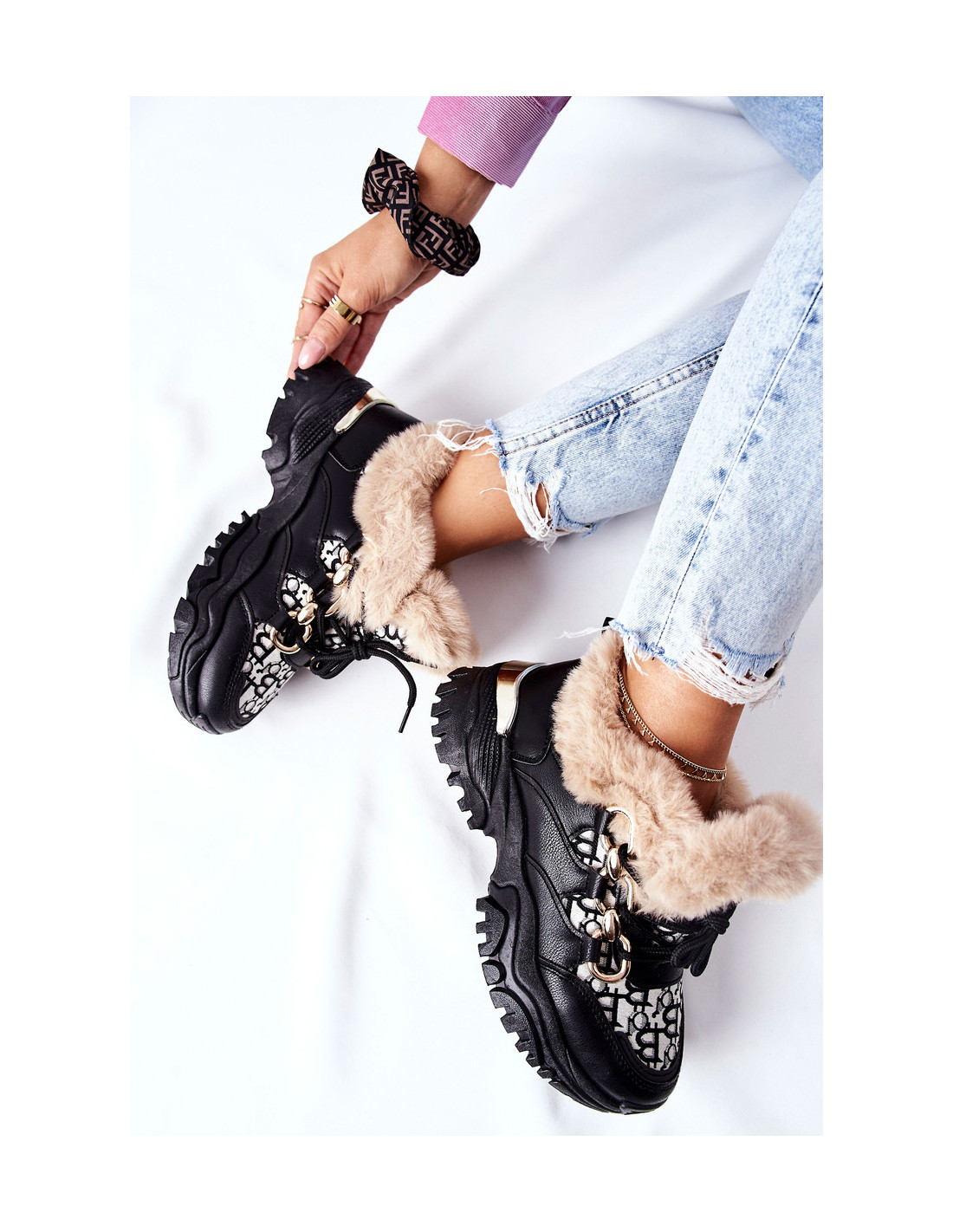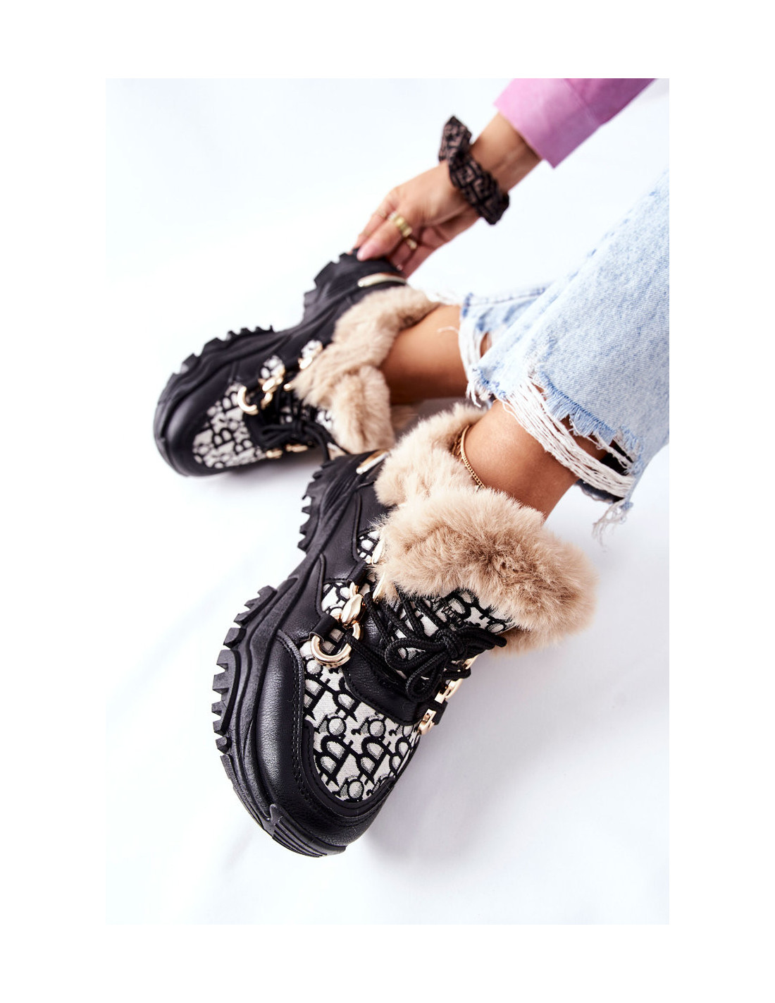 Tokių batų dar nematėte ir tikrai patrauksite akį! Žieminės versijos sportiniai bateliai. Viršutinė dalis – ekologiškos odos ir medžiagos derinys. Viršus ir vidus aptraukti šiltu, dirbtiniu kailiu. Klasikinis kirpimas su raišteliu.