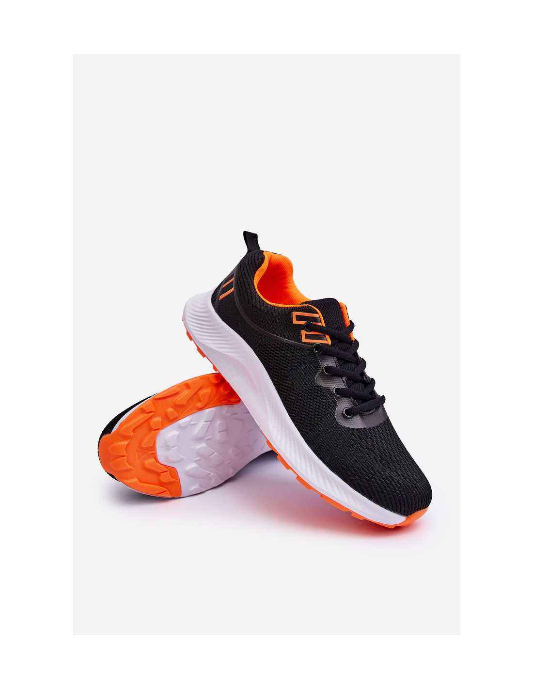 Klasikiniai vyriški sportiniai bateliai, suvarstomi juodai oranžinės spalvos jaspio