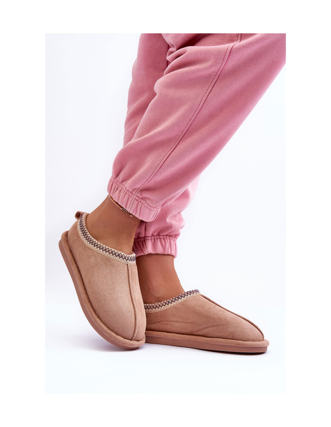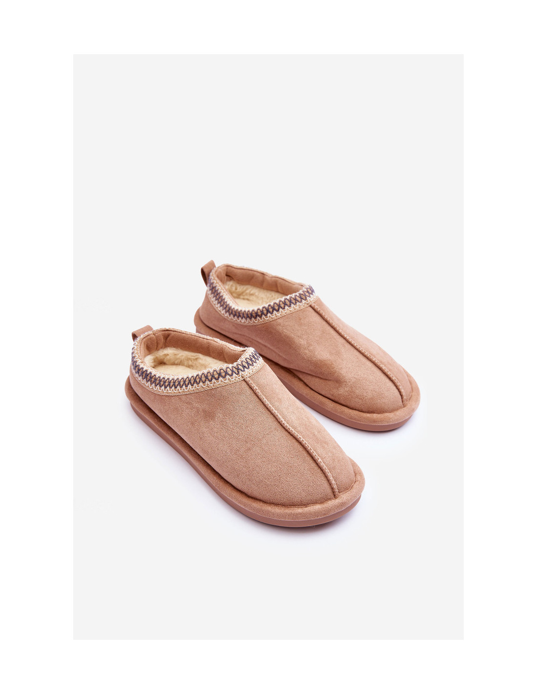 Moteriškos zomšinės šlepetės su kailiu smėlio...