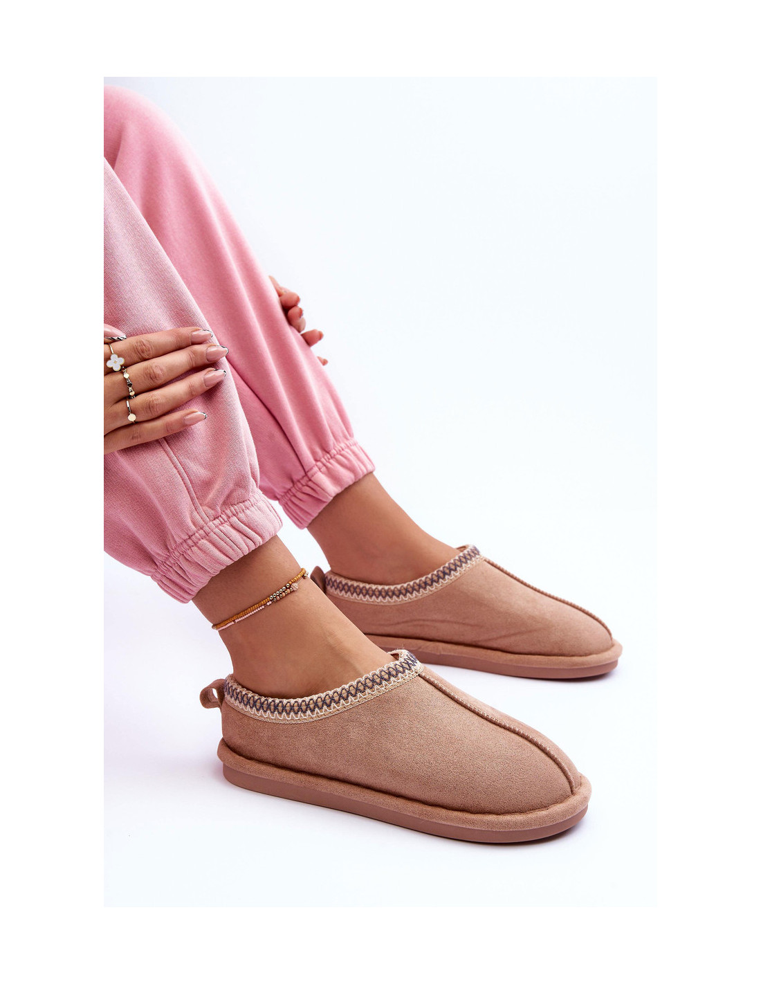 Moteriškos zomšinės šlepetės su kailiu smėlio spalvos Polinna