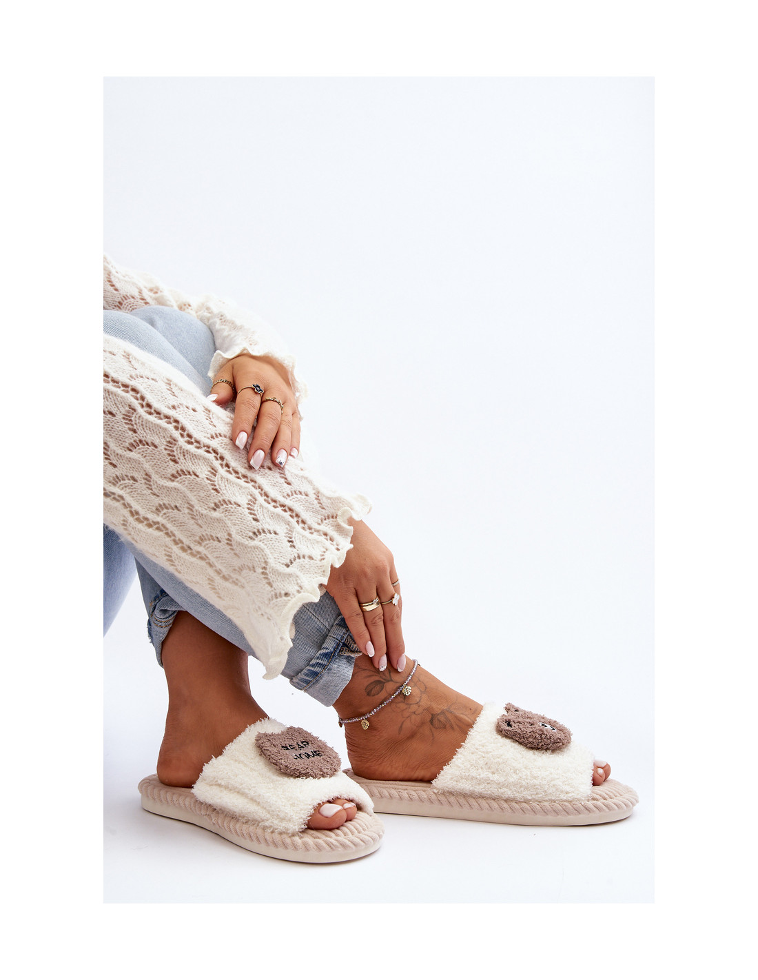 Jaukios šlepetės plokščiu guminiu padu yra puikus pasirinkimas šaltesnėms dienoms. Pagaminti iš minkšto, dirbtinio kailio, suteikia šilumos ir komforto. Šlepečių priekyje yra gražus pleistras. Atviri kojų pirštai. Puikiai tinka poilsiui namuose! Renkantis dydį, vadovaukitės dydžių lentele.
