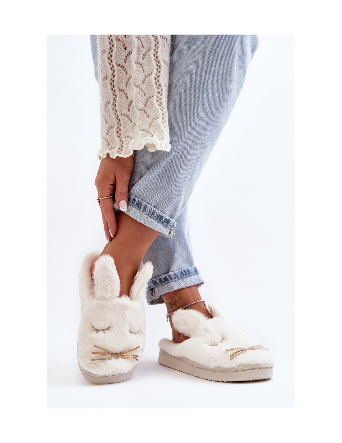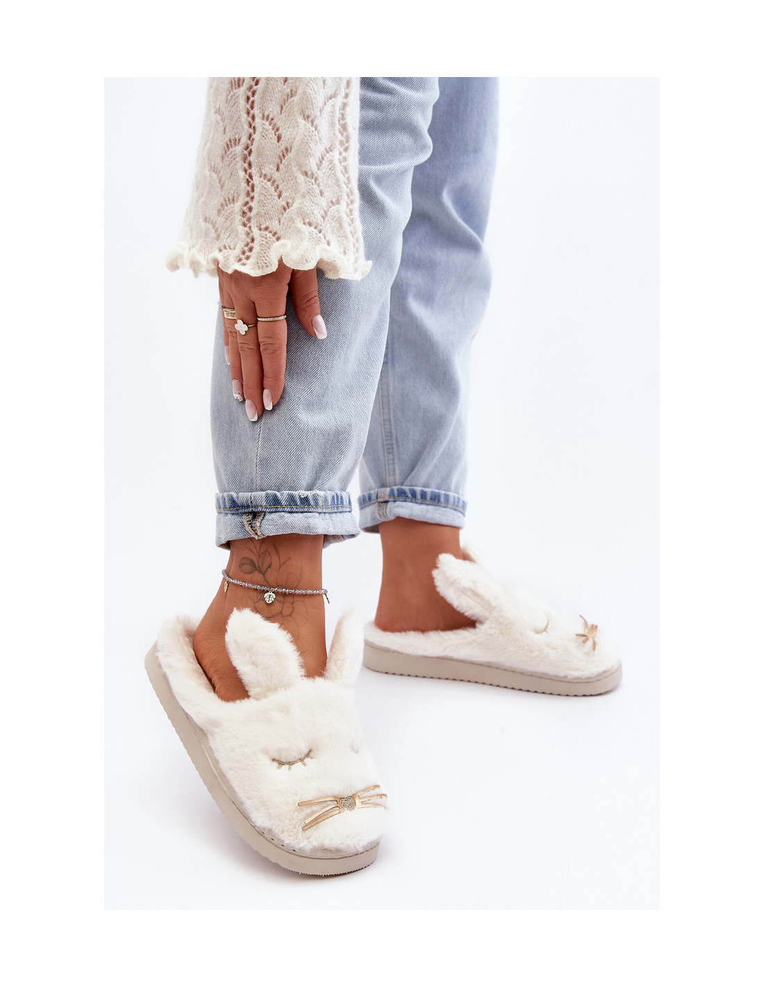 Moteriškos kailinės šlepetės su zuikučiu, balta Dolcevia