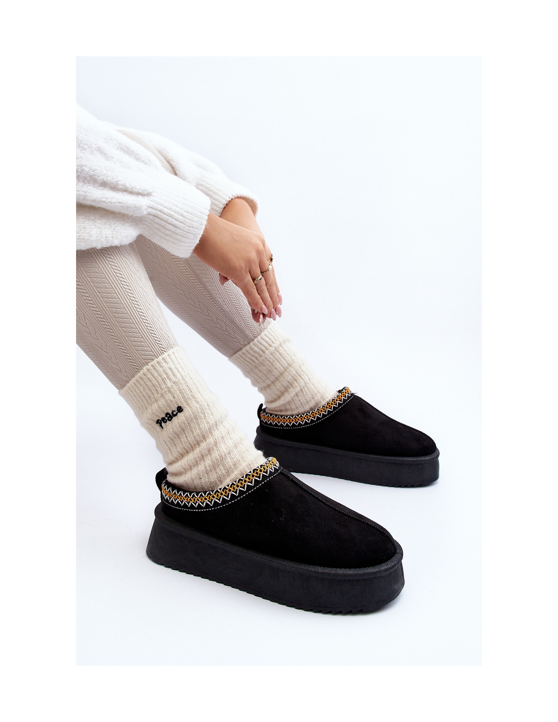 Moteriškos šlepetės storu guminiu padu. Šis modelis stebina ne tik patogumu, bet ir stilinga apdaila. Dėl izoliacijos su kailiu jie yra idealus pasirinkimas šaltesnėms dienoms. Jūs tikrai turėtumėte juos turėti! Renkantis dydį, vadovaukitės dydžių lentele.