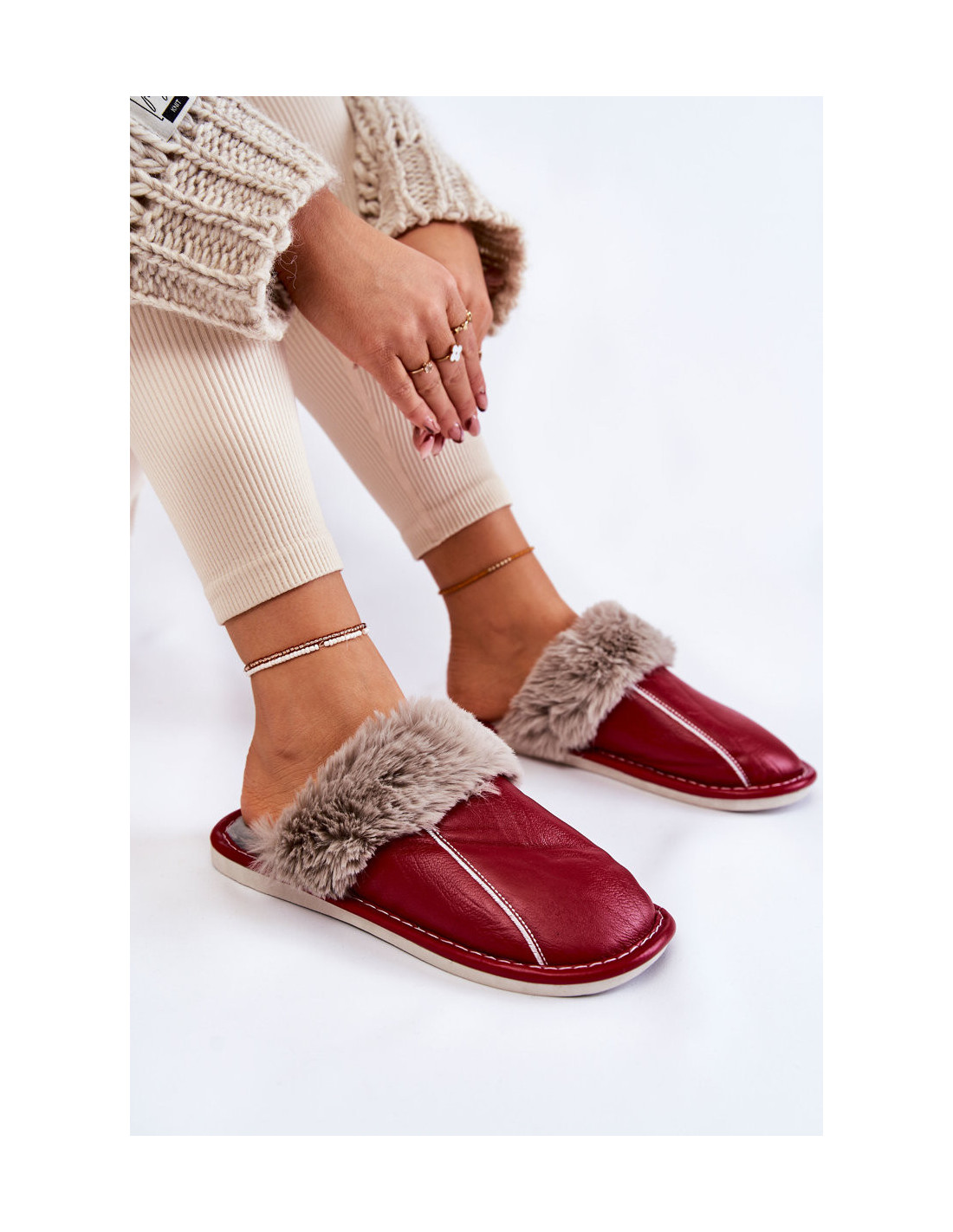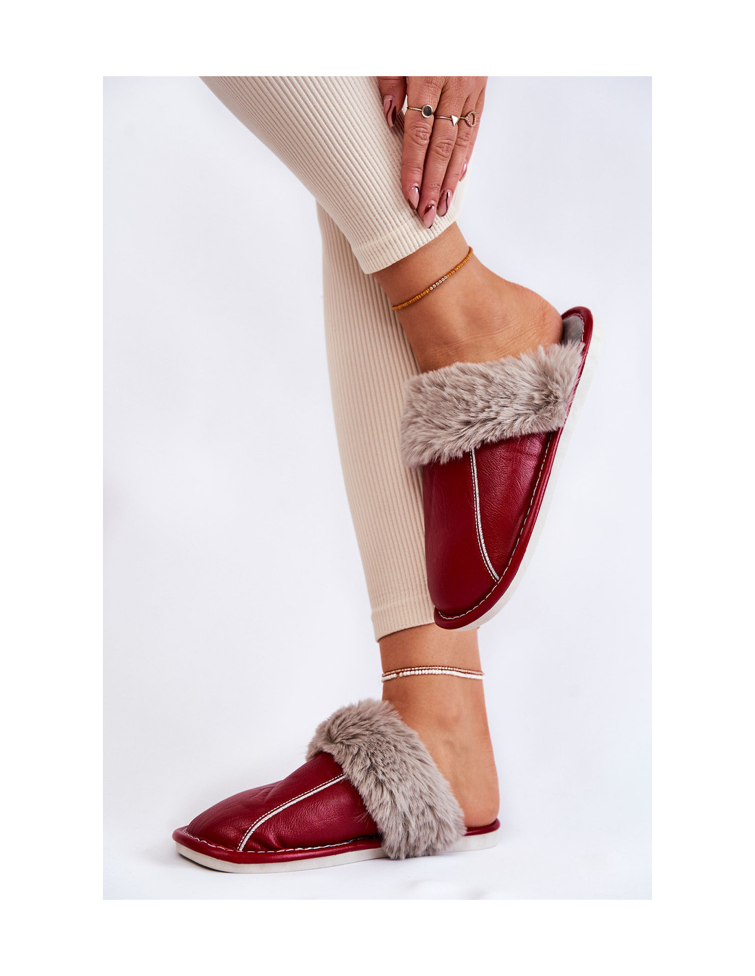 Moteriškos odinės šlepetės su kailiu Red Rossa