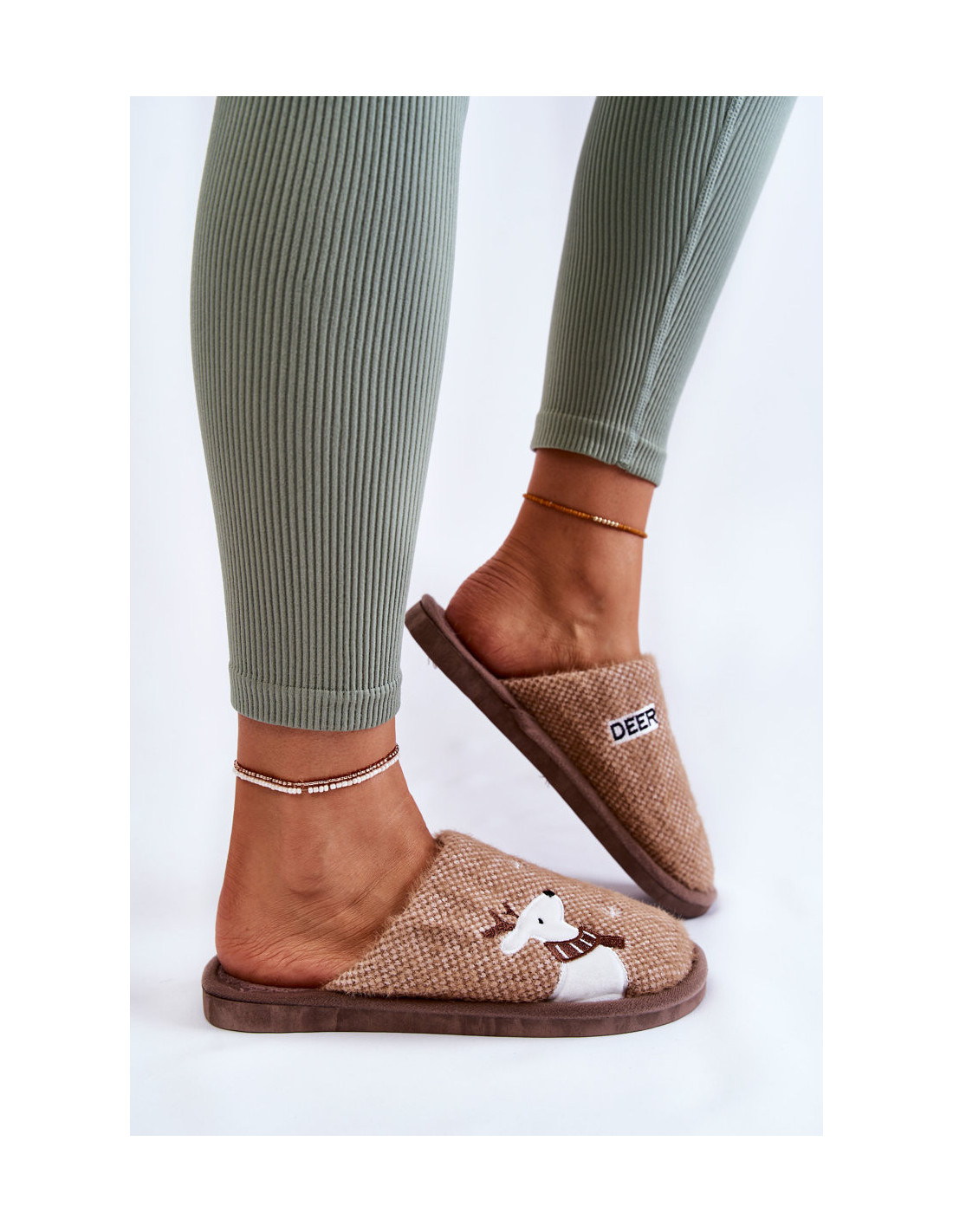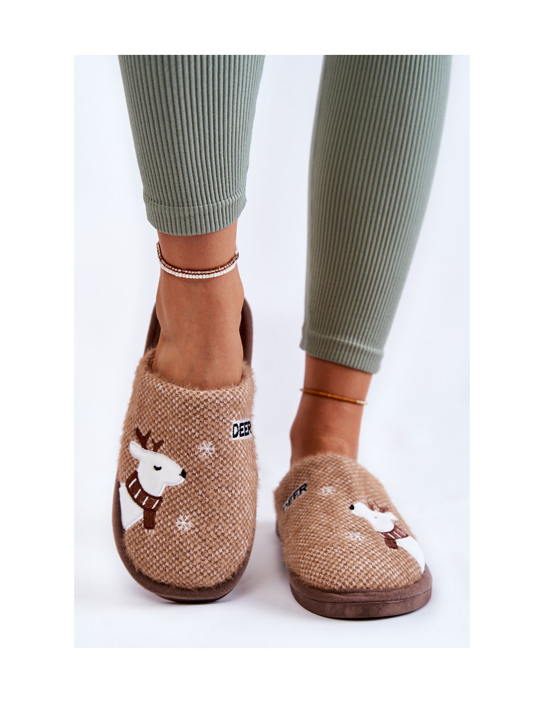 Moteriškos kalėdinės šlepetės su šiaurinio elnio rudu miliju