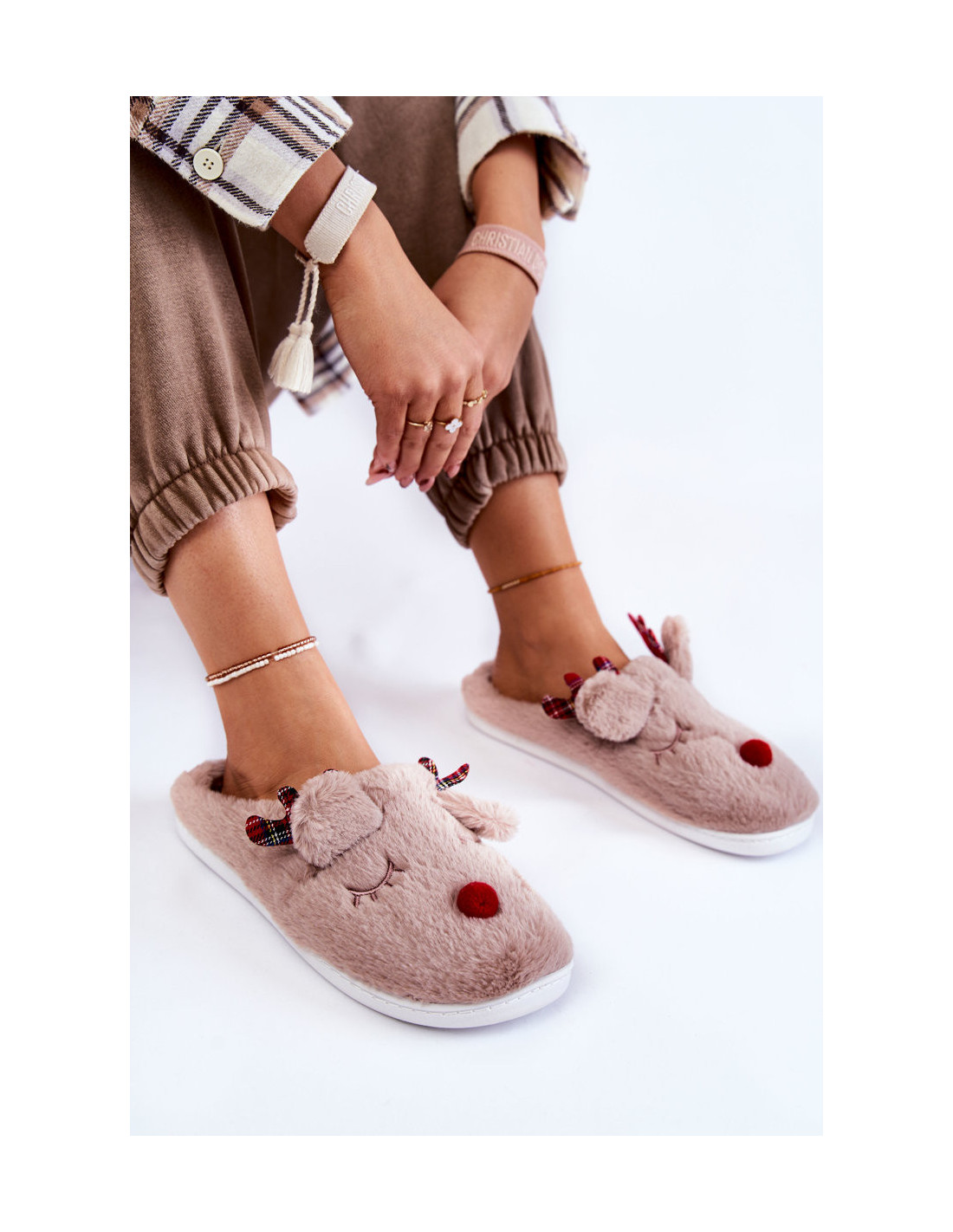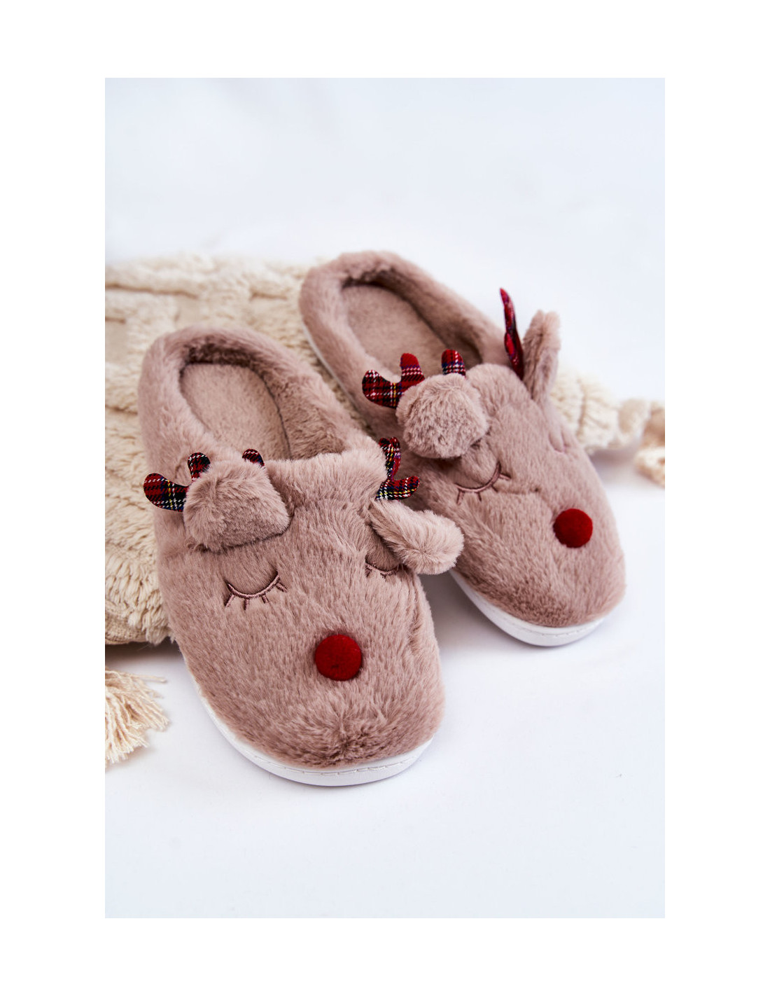 Moteriškos kalėdinės šlepetės su šiaurinio elnio smėlio spalvos Claire