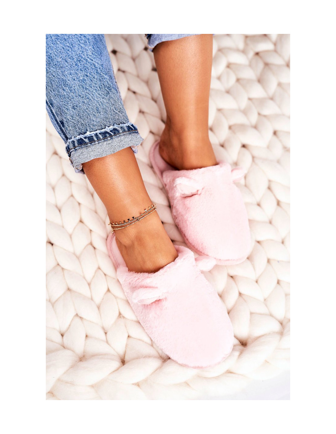 Moteriškos kailinės šlepetės su mažomis ausytėmis Šviesiai rožinės spalvos Hippo