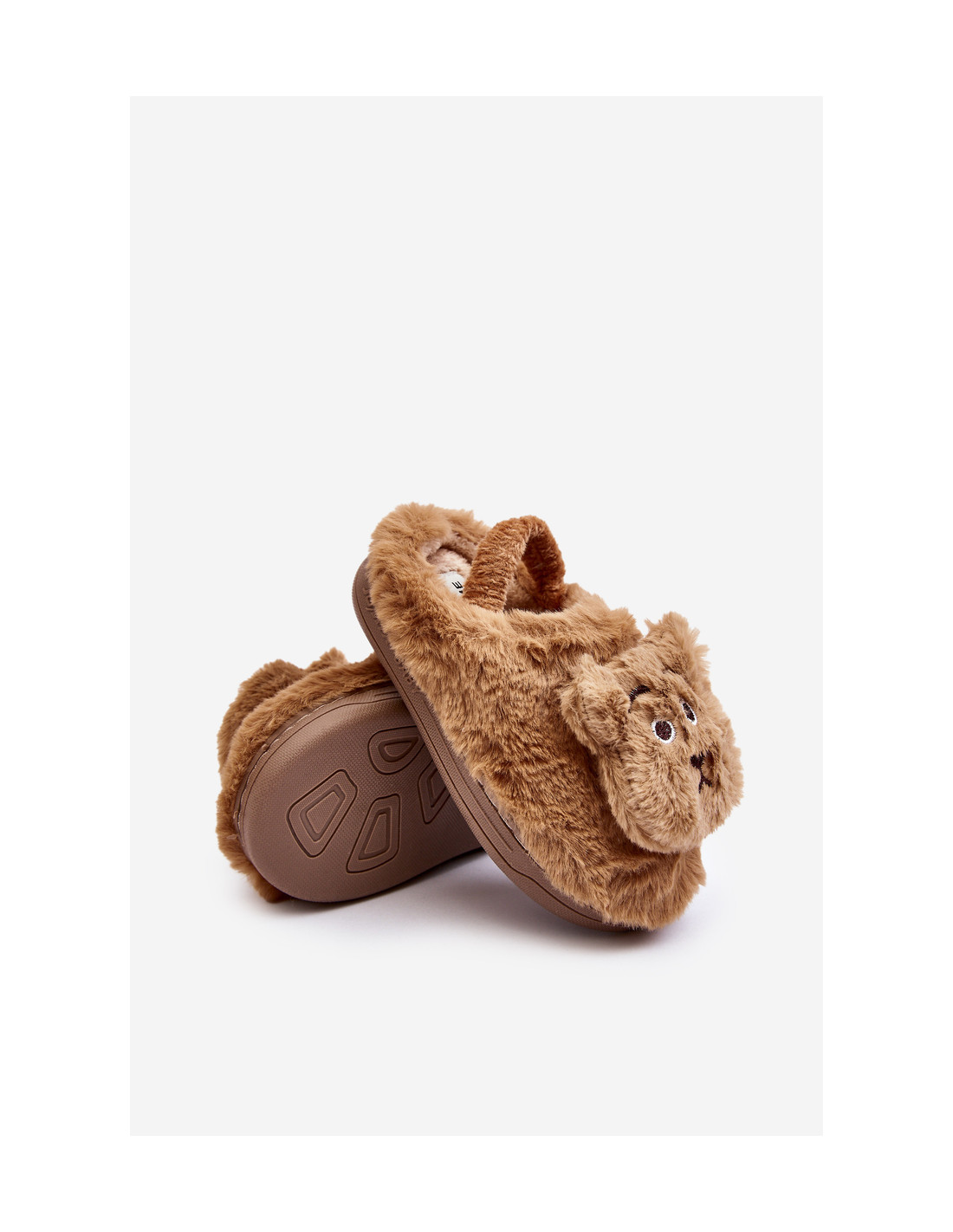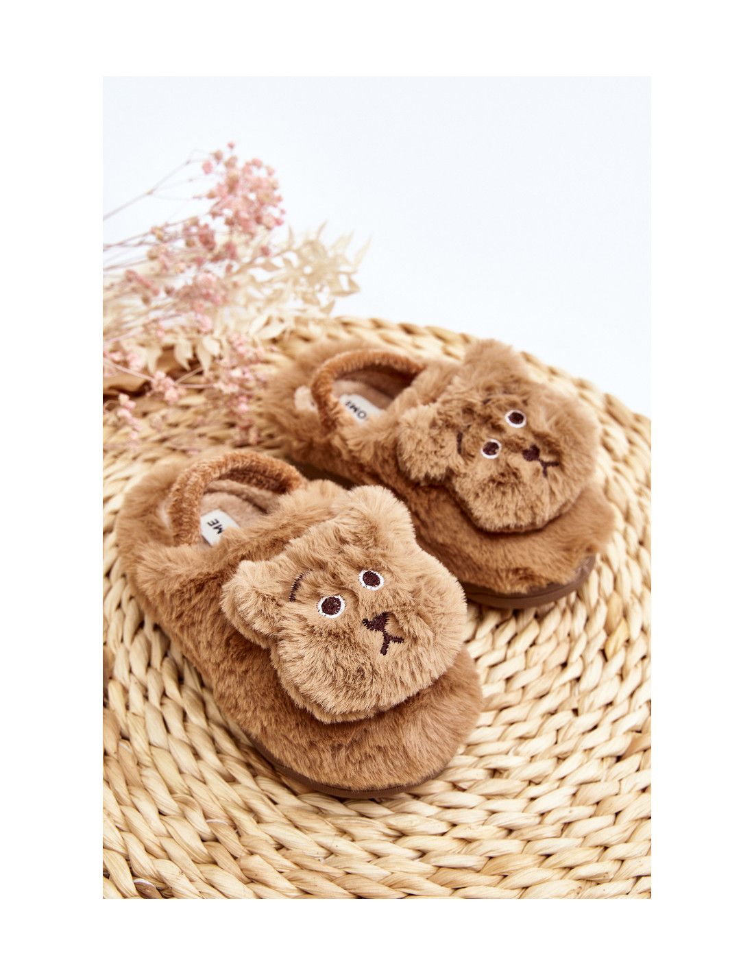 Vaikiškos kailinės šlepetės su meškiuku, rudos spalvos Dicera