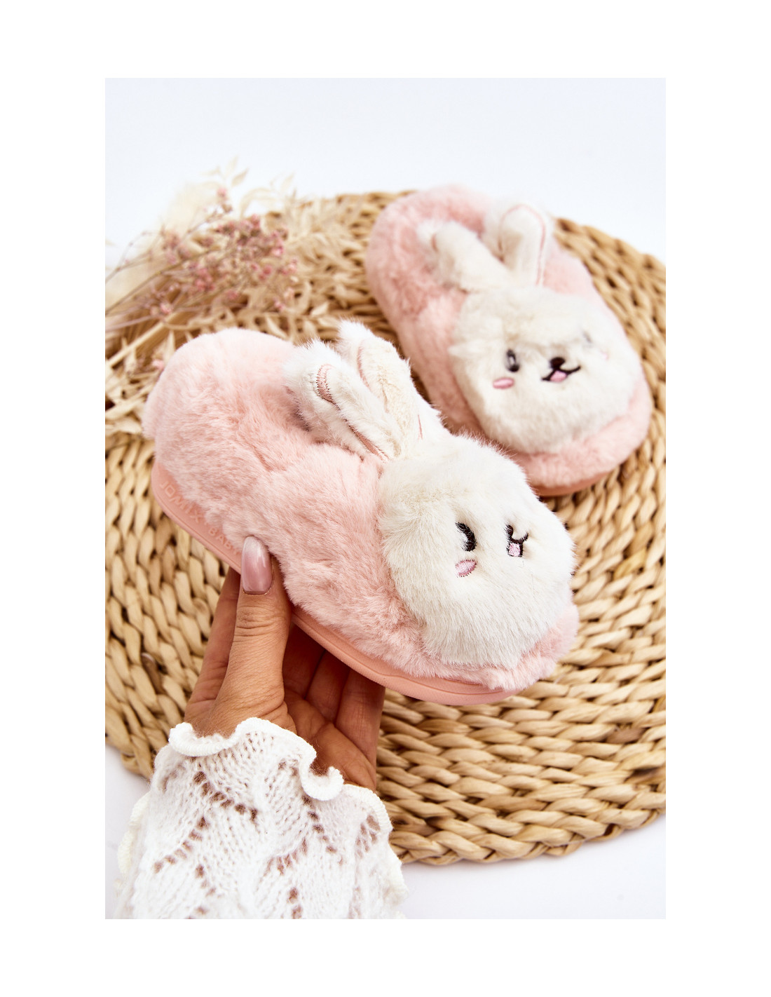 Pūkuotos vaikiškos šlepetės su zuikučiu, šviesiai rožinės spalvos Apolanie