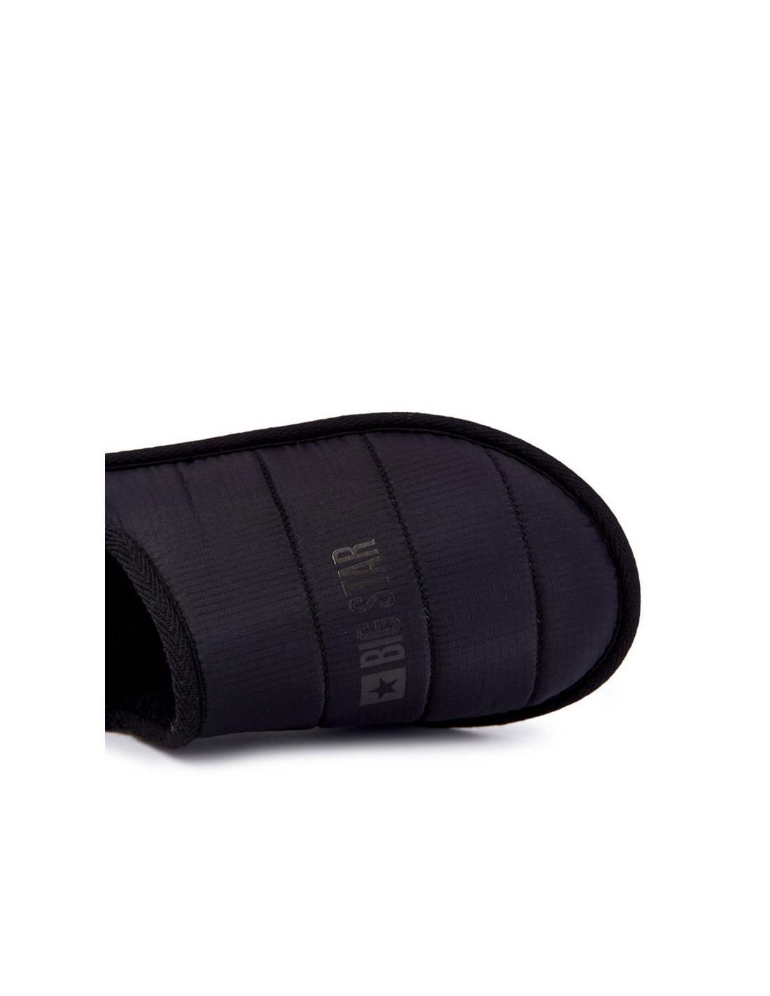 Patogumą naudojimo metu užtikrins vyriškos, užsimaunamos šlepetės platesniu nosyliu. Šlepetės iš tekstilinės medžiagos su siūlėmis. Viršuje yra Big Star logotipas. Viduje šlepetės buvo izoliuotos minkšta antklode. Pastatas ant pado iš guminės medžiagos, kuri puikiai izoliuoja nuo šaltos žemės. Renkantis dydį, naudokite dydžių lentelę.