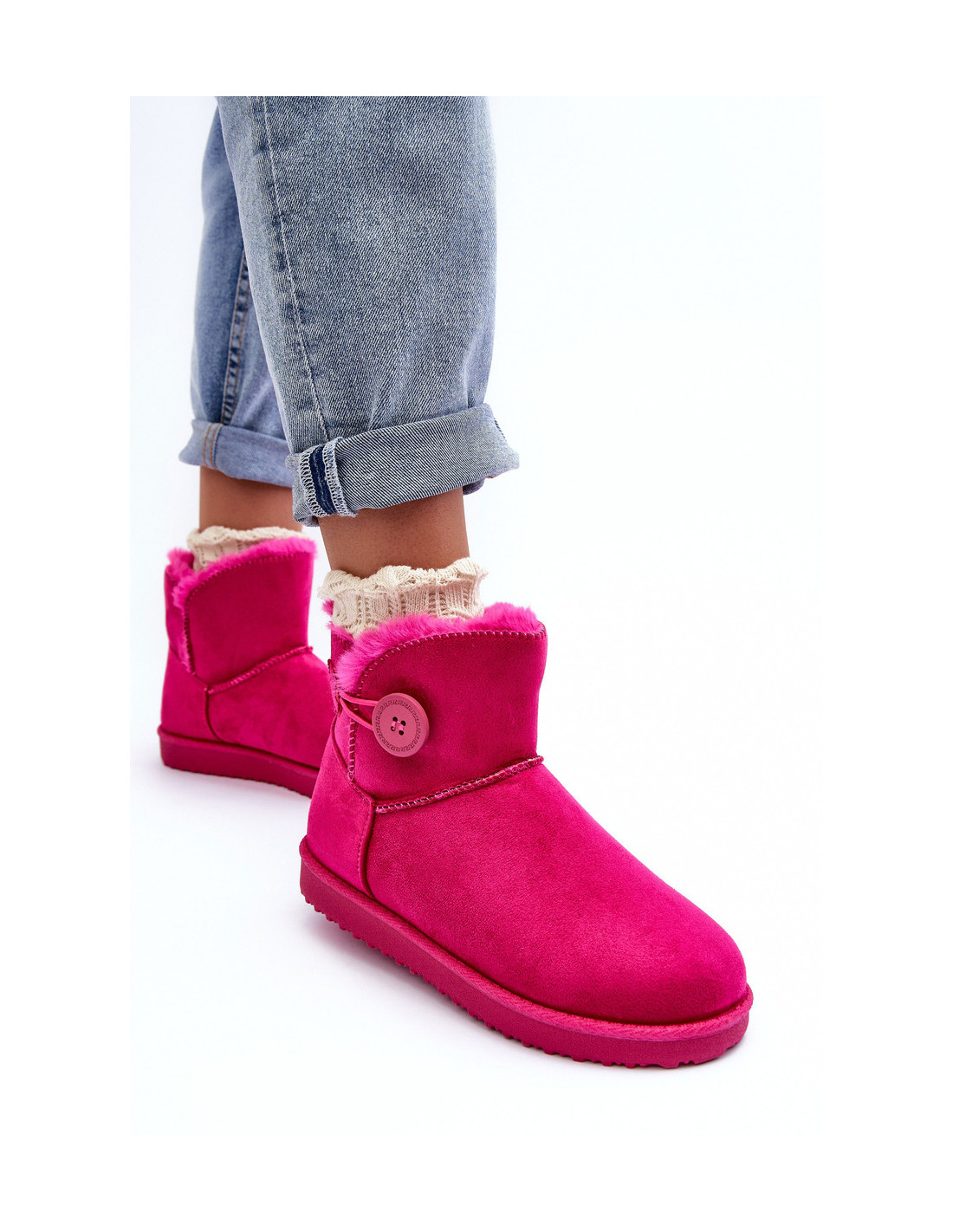 Moteriški dygsniuoti sniego batai su dekoratyviniu fuksijos spalvos sirioliu