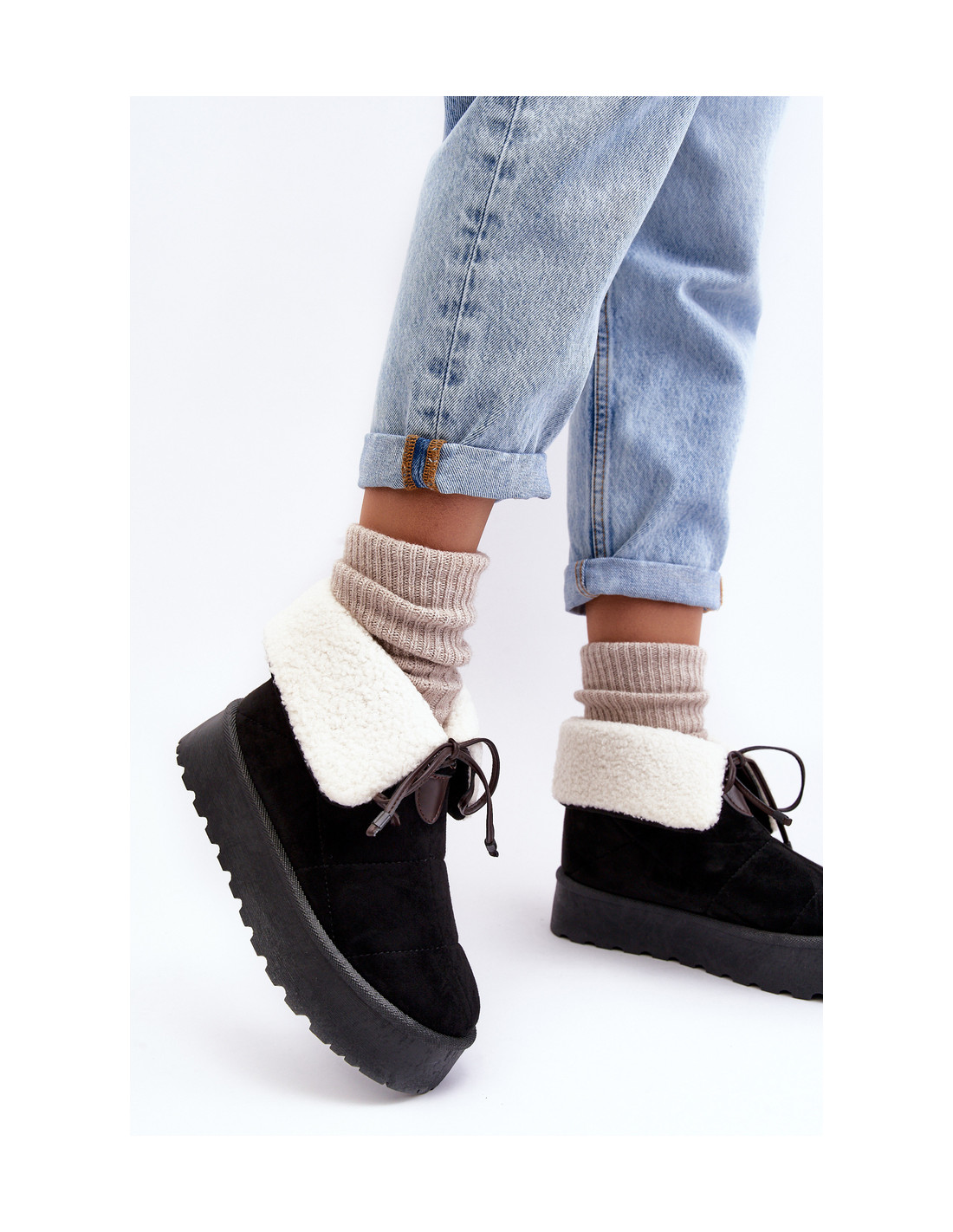 Moteriški sniego batai puikiai tiks šaltoms dienoms. Pagaminta iš ekologiškos zomšos. Pastatykite ant storos platformos. Izoliuotas avikailiu. Slip-on modelis. Viršus dekoruotas raišteliu. Renkantis dydį, vadovaukitės dydžių lentele.