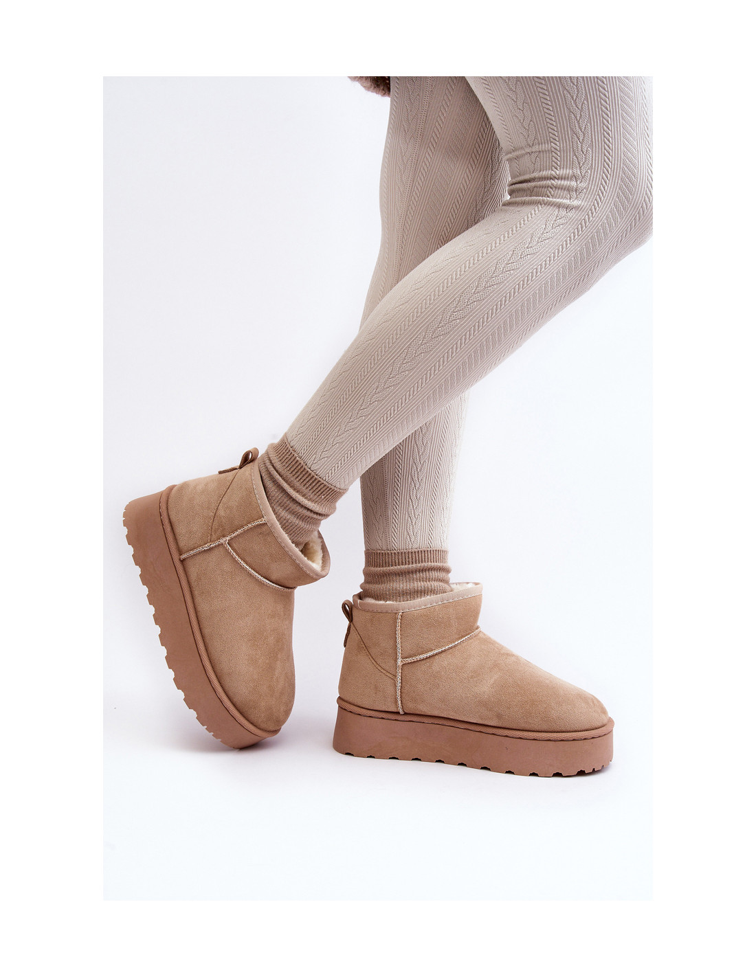 Moteriški platforminiai sniego batai su kailiniu pamušalu, smėlio spalvos Xamella