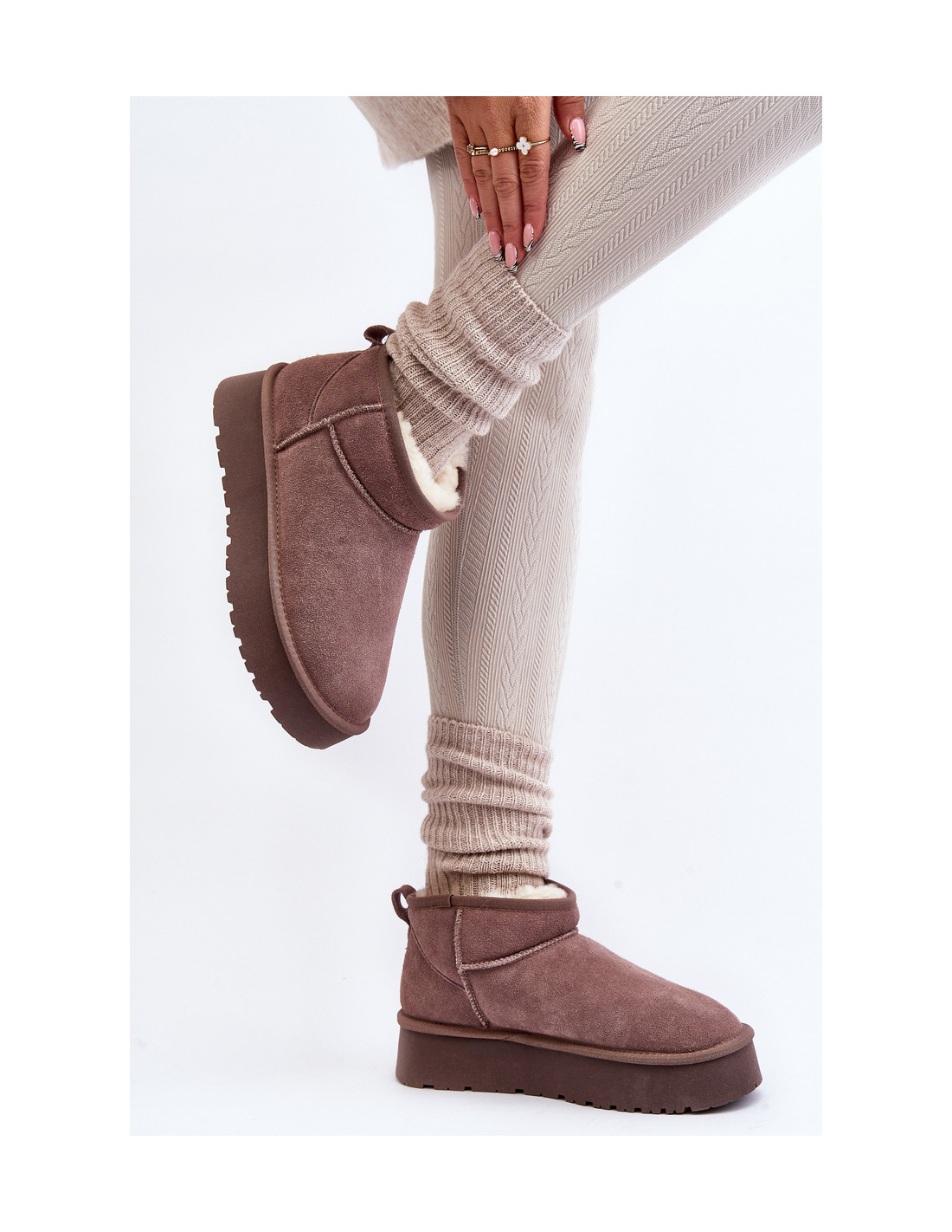 Moteriški sniego batai puikiai tiks šaltoms dienoms. Pagaminta iš aukštos kokybės natūralios odos. Batų vidus apšiltintas storu, ekologišku kailiu. Šis klasikinis modelis gali būti priderintas prie daugelio stilių. Batai turi masyvią platformą, kuri puikiai izoliuoja juos nuo žemės. Batai itin lengvi. Renkantis dydį, vadovaukitės dydžių lentele.