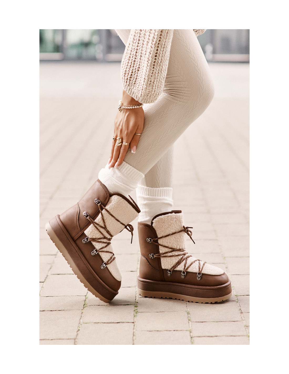 Moteriški platforminiai sniego batai su raišteliu, ruda Riaviana
