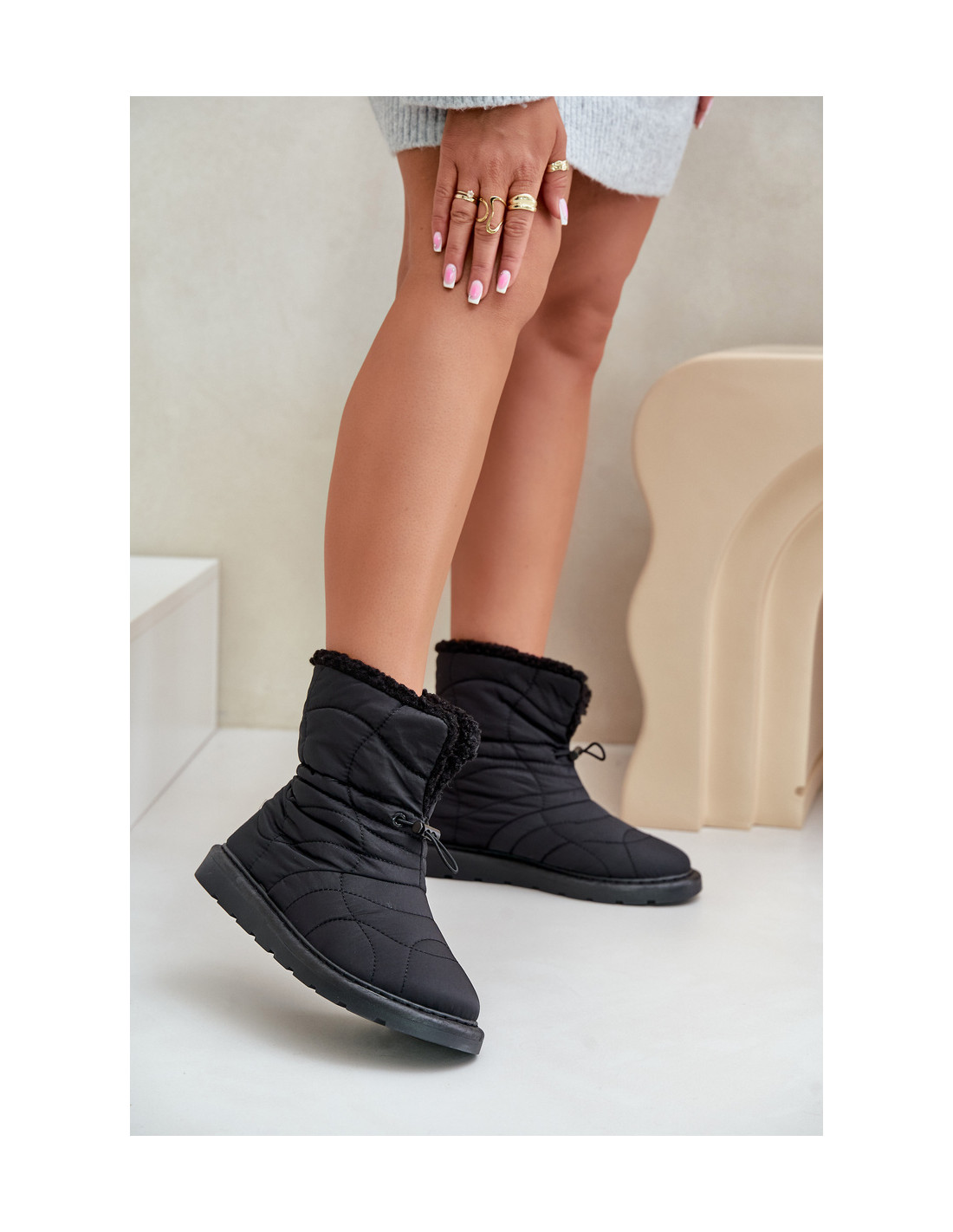 Sniego batai su siūlėmis viršutinėje dalyje yra stilingas ir funkcionalus pasirinkimas žiemos dienoms. Užsegamas modelis su raišteliu užtikrina patogų užsidėjimą ir prigludimą prie kojos. Avies kailiu apšiltintas vidus garantuoja šilumą ir komfortą net ir šalčiausiomis dienomis. Puikiai tinka žiemos pasivaikščiojimams, madingą išvaizdą derina su praktiniais sprendimais. Renkantis dydį, vadovaukitės dydžių lentele.